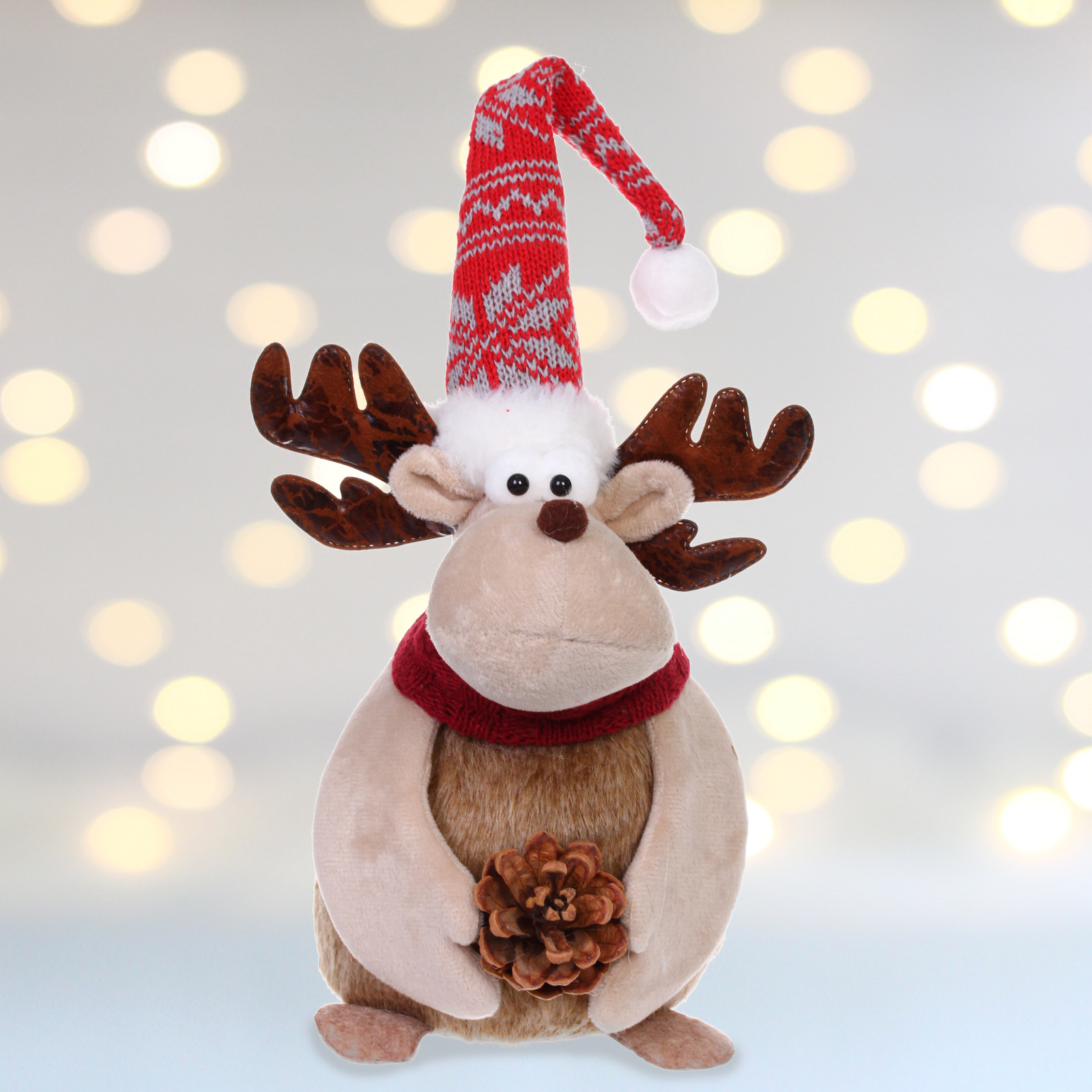 Эта очаровательная фигурка новогоднего оленя станет идеальным дополнением вашего праздничного декора. С её помощью вы сможете создать уютную и волшебную атмосферу в вашем доме, которая будет радовать вас и ваших близких в течение всего новогоднего сезона. Мягкий и приятный на ощупь олень выполнен из качественных материалов, что гарантирует его долговечность и безопасность для детей.