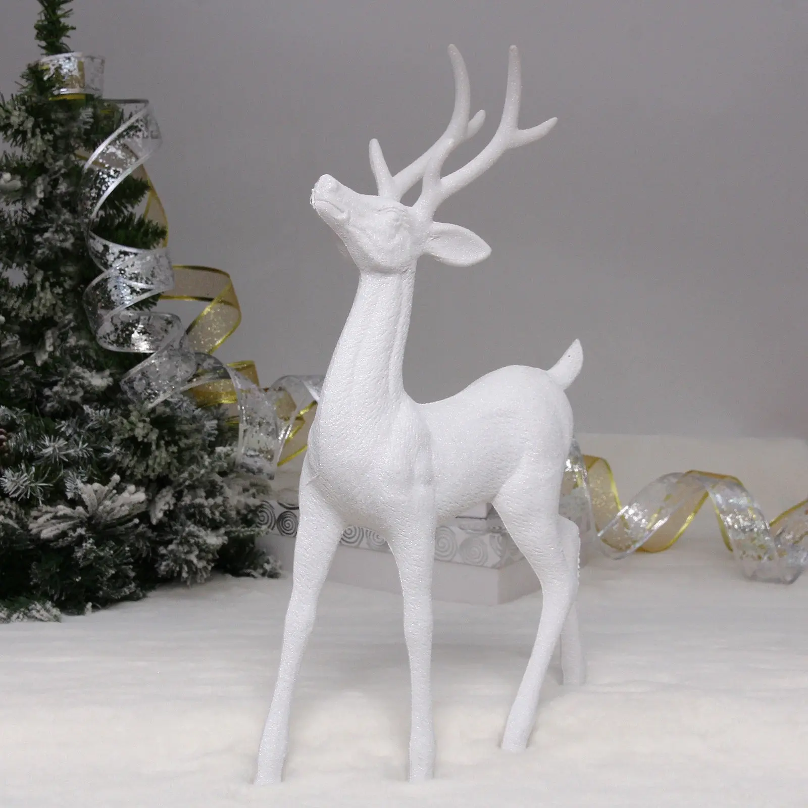 Добавьте утончённости и зимнего очарования в ваш интерьер с помощью фигурки "Волшебный олень" высотой 42 см. Белый цвет и детальная прорисовка форм создают атмосферу зимней сказки, а изящные ветвистые рога и текстурированная поверхность, имитирующая шерсть, придают ей реализм и художественную ценность.