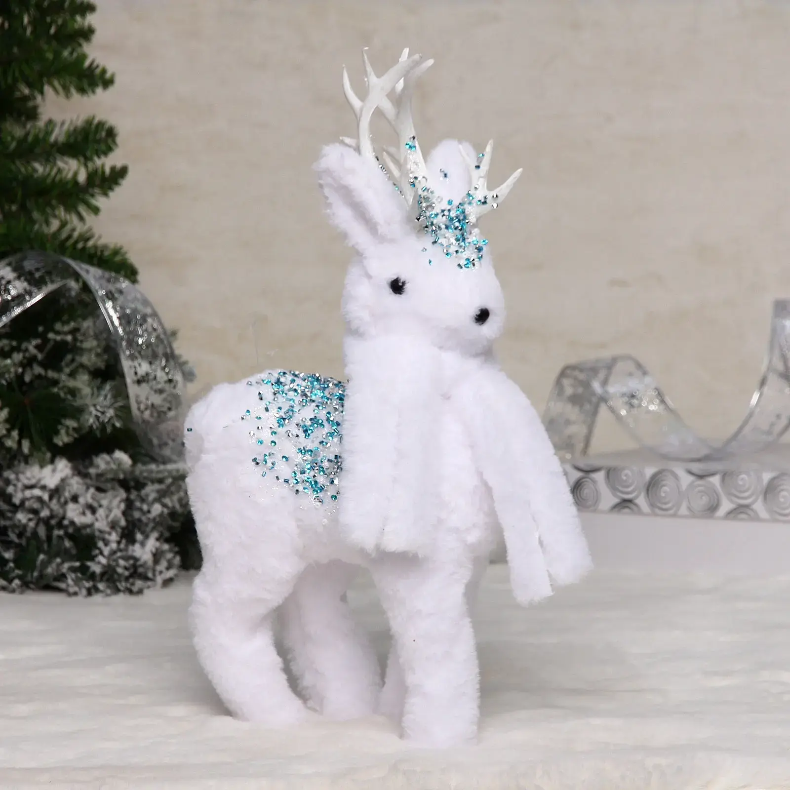 Фигурка новогодняя "Зимний оленёнок" 20*10*38 см, белая с блёстками, устойчивая