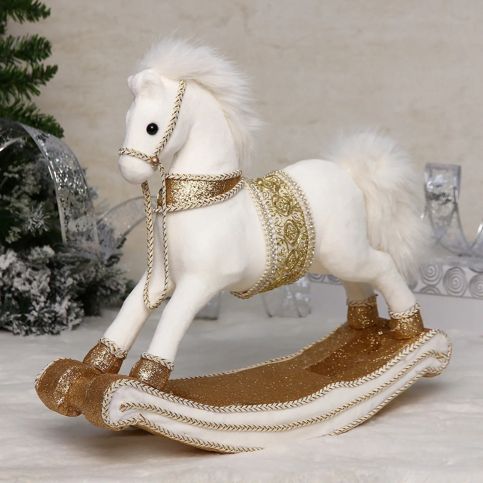 Новогодняя фигурка 'Зимняя лошадка' станет изысканным украшением вашего праздничного интерьера. Благородное сочетание белоснежного текстиля и роскошных золотых элементов создает ощущение зимней сказки.