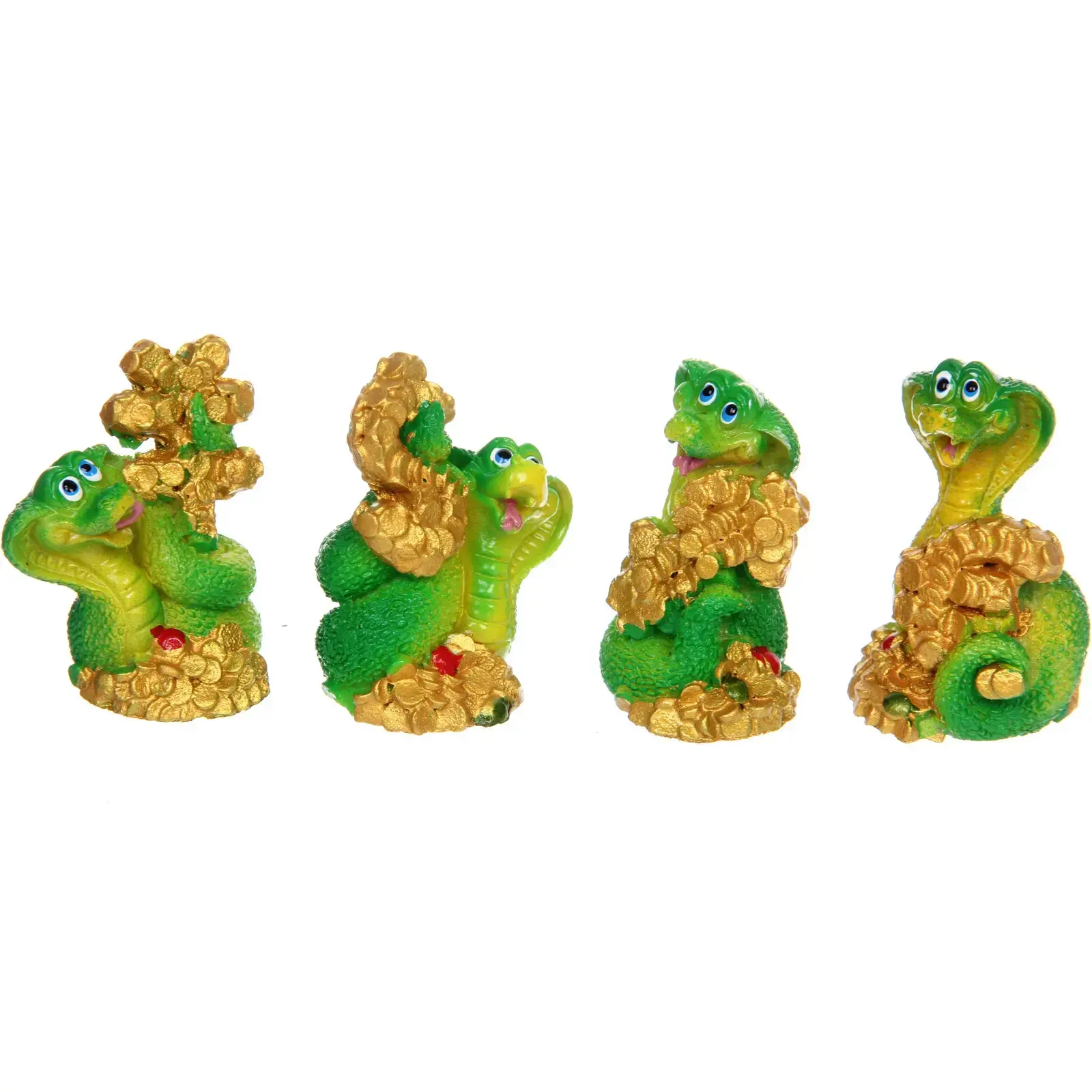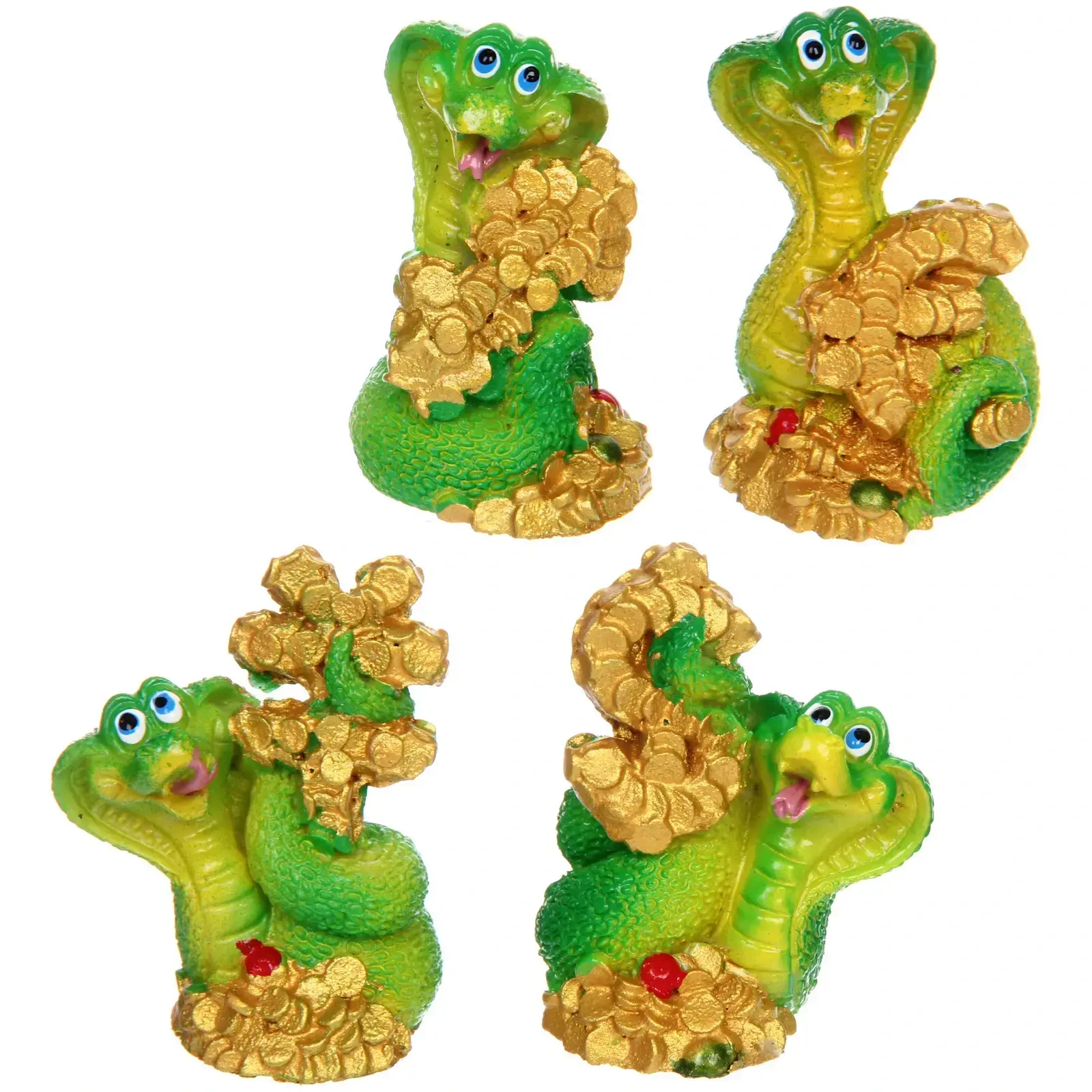 Фигурка новогодняя 'Змея - Денежный поток', 3,5*3,5*5,5 см, полистоун, зеленый/золотой