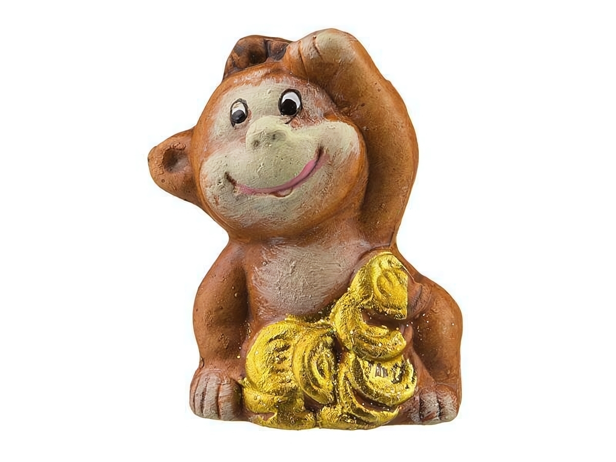 Фигурка обезьяны с монетами, фарфоровая, 5×4,5×6,5 см, коричневая, детализированная