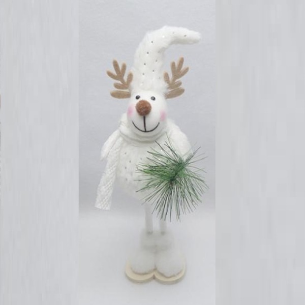 Фигурка «Олененок - Зимнее чудо» выполнена с вниманием к деталям: у нее есть длинный белый колпак с ушками и рогами, а также милое лицо с розовыми щечками и коричневым носом. На шее олененка обёрнут белый шарф, а в руках он держит зелёный элемент, имитирующий ветку хвойного дерева. Это делает фигурку не только красивой, но и оригинальной.