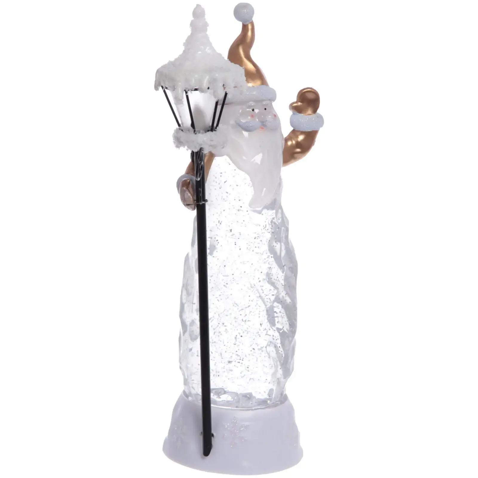 Фигурка выполнена из прочного пластика и стекла, что гарантирует ее долговечность и устойчивость к повреждениям. Высота фигурки составляет 27 см, что делает ее заметной, но не слишком громоздкой. Она станет отличным дополнением к вашему новогоднему декору, а также может использоваться как самостоятельный элемент оформления.
