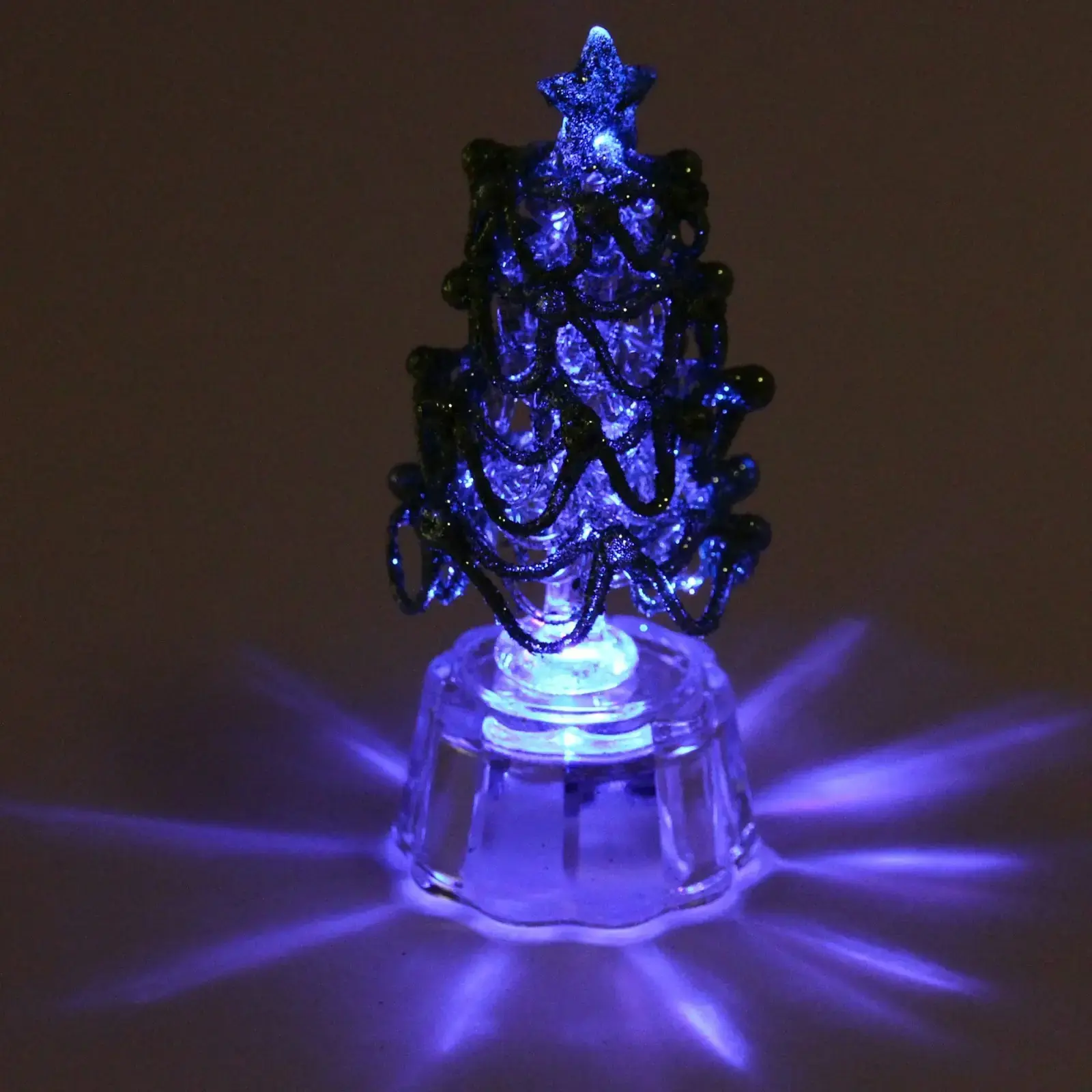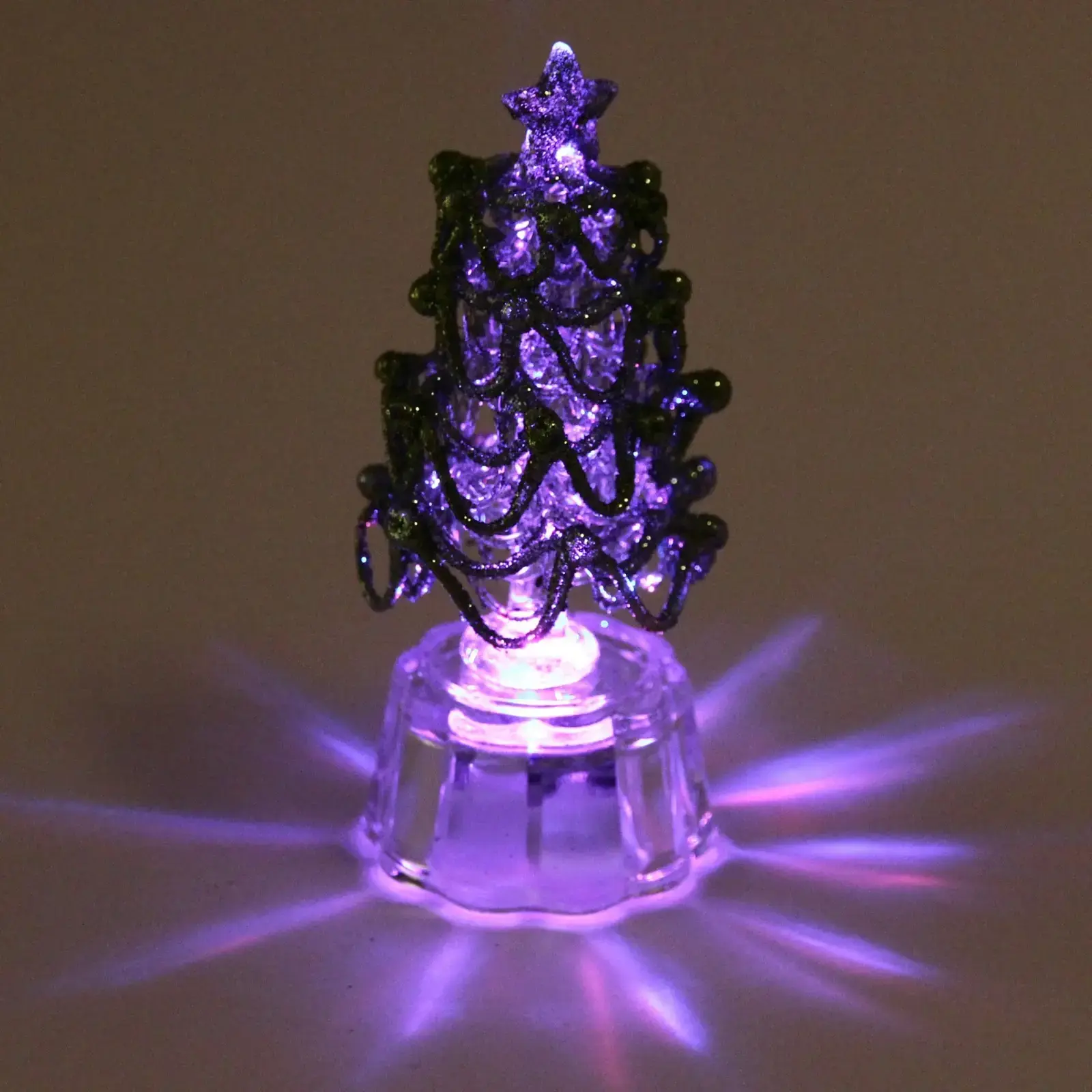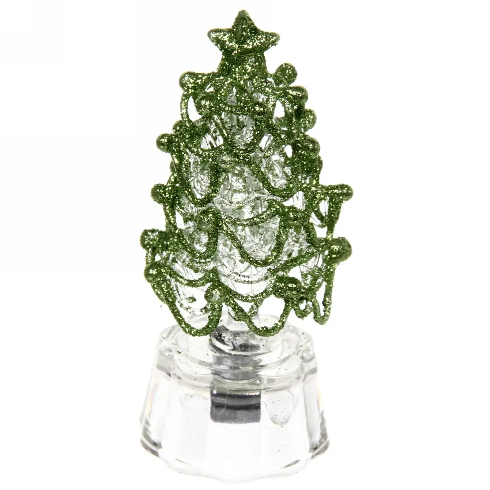 Фигурка выполнена в зеленом цвете с блестящей отделкой, что придаёт ей особый шарм. Она украшена элементами, напоминающими гирлянды, и имеет прозрачное основание, что делает её визуально легкой и воздушной. Эта елочка станет не только украшением, но и источником света, который будет радовать вас и ваших гостей в течение всего праздника.