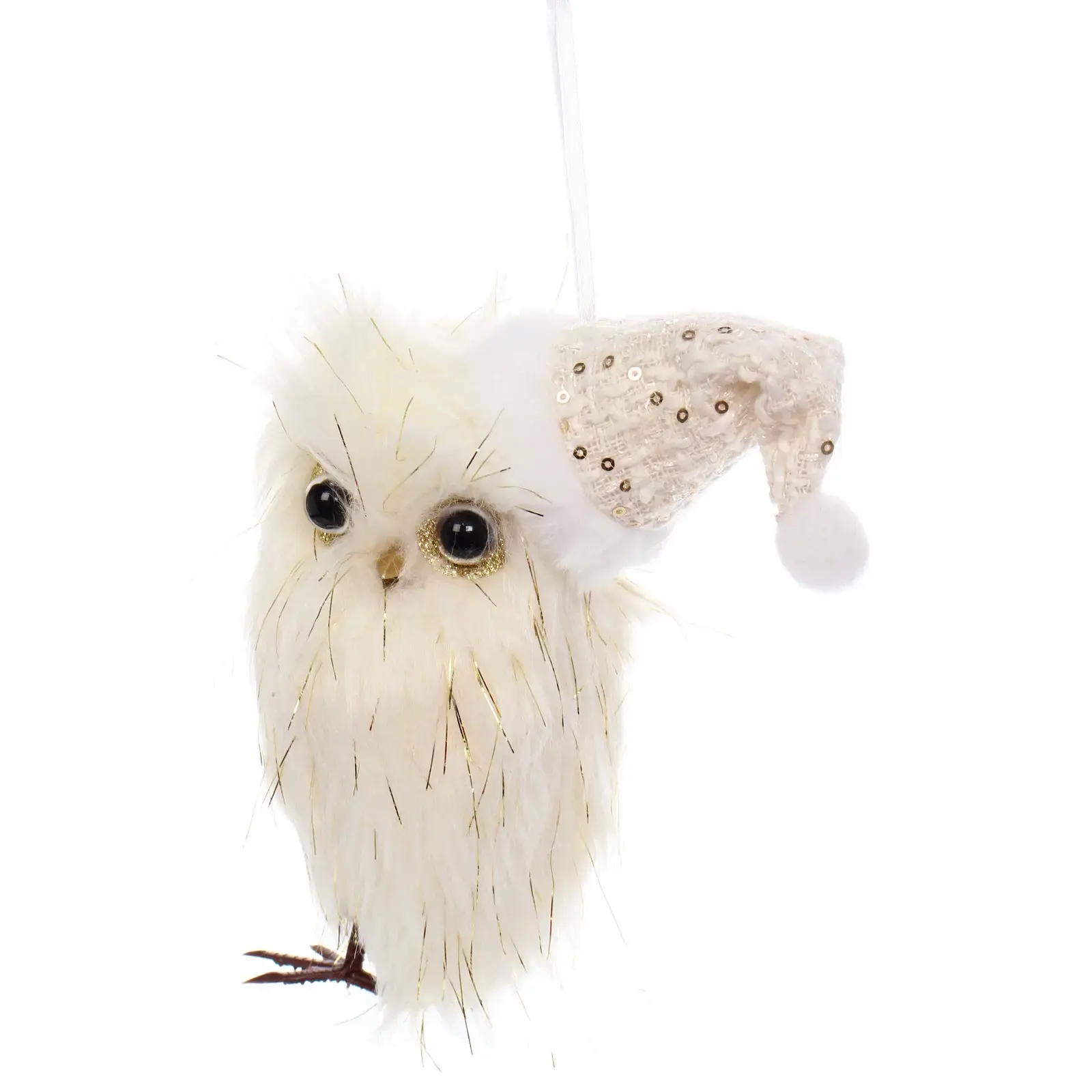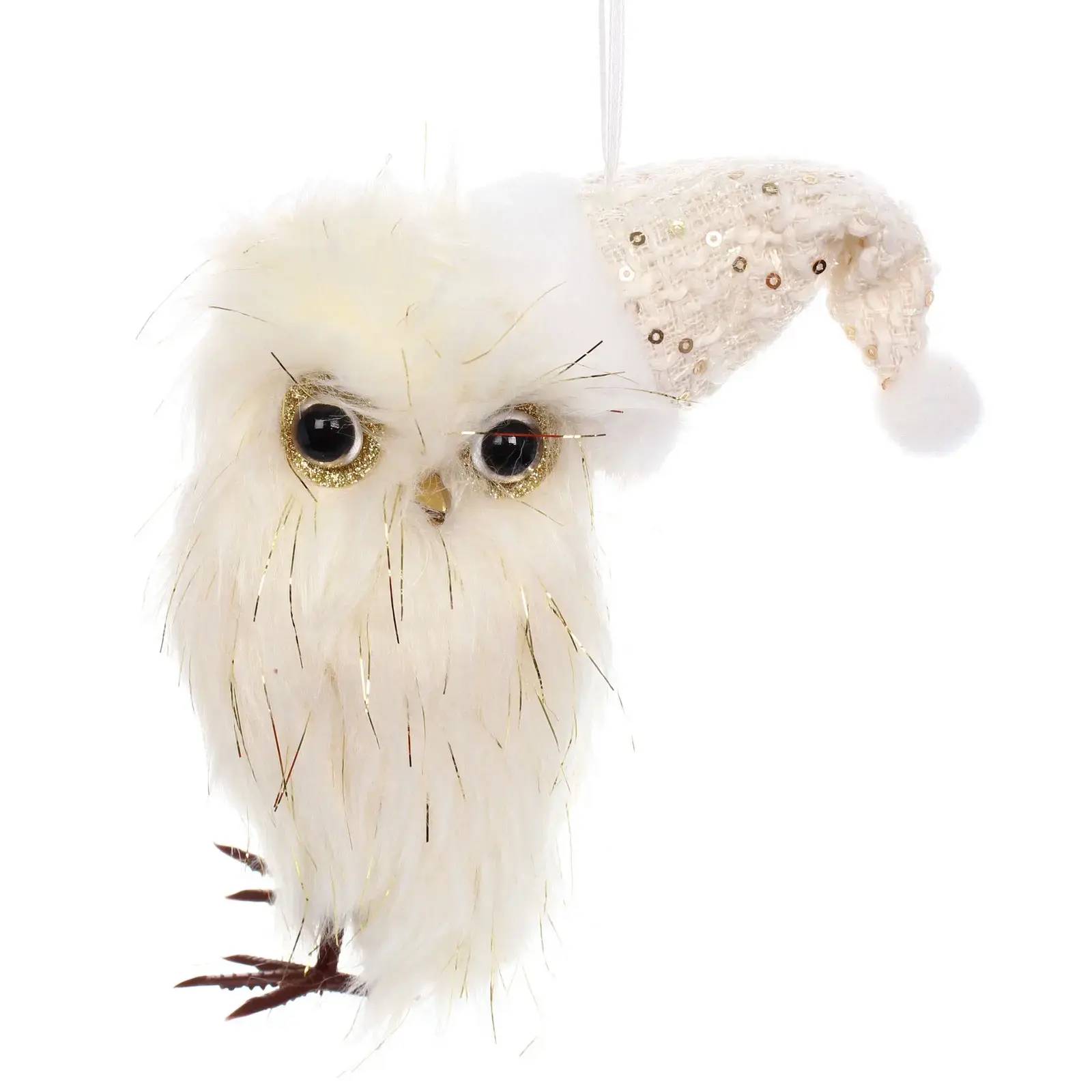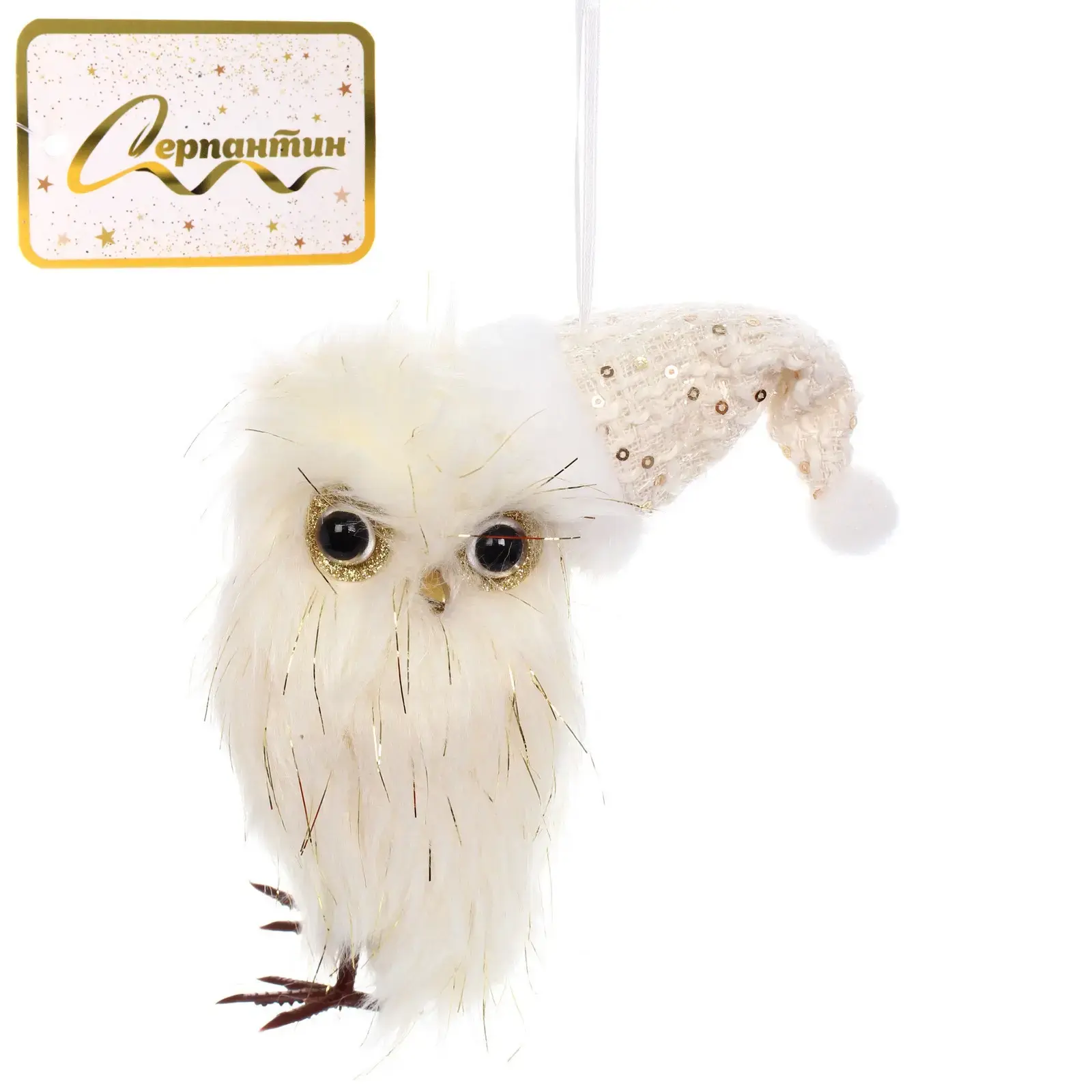 Ёлочная подвеска «Совушка в шапке» 18 см, Шампань, пластик, для елки и декорирования