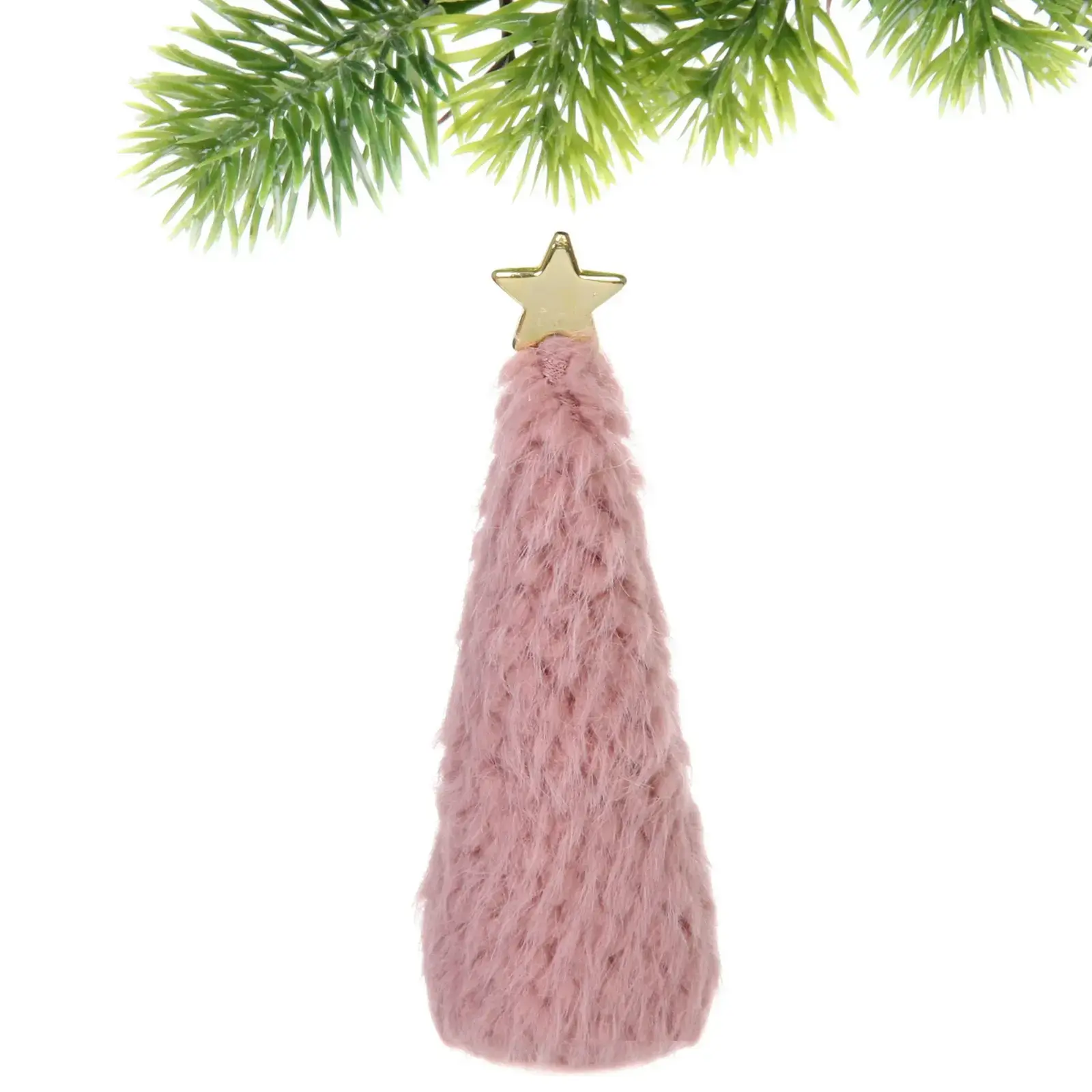 Фигурка «Зимняя елочка» высотой 15 см станет идеальным элементом декора для вашего дома в праздничный сезон. Ее розовый цвет и пушистая текстура создают атмосферу уюта и тепла, а золотая звезда на вершине добавляет изысканности. Это украшение не только привнесет радость в ваш интерьер, но и станет отличным подарком для близких.