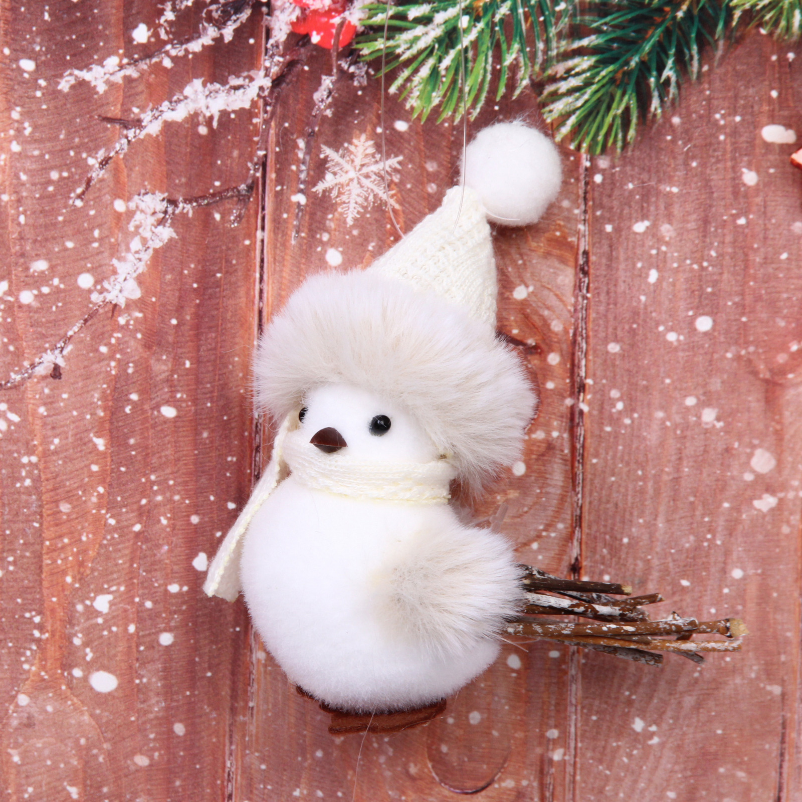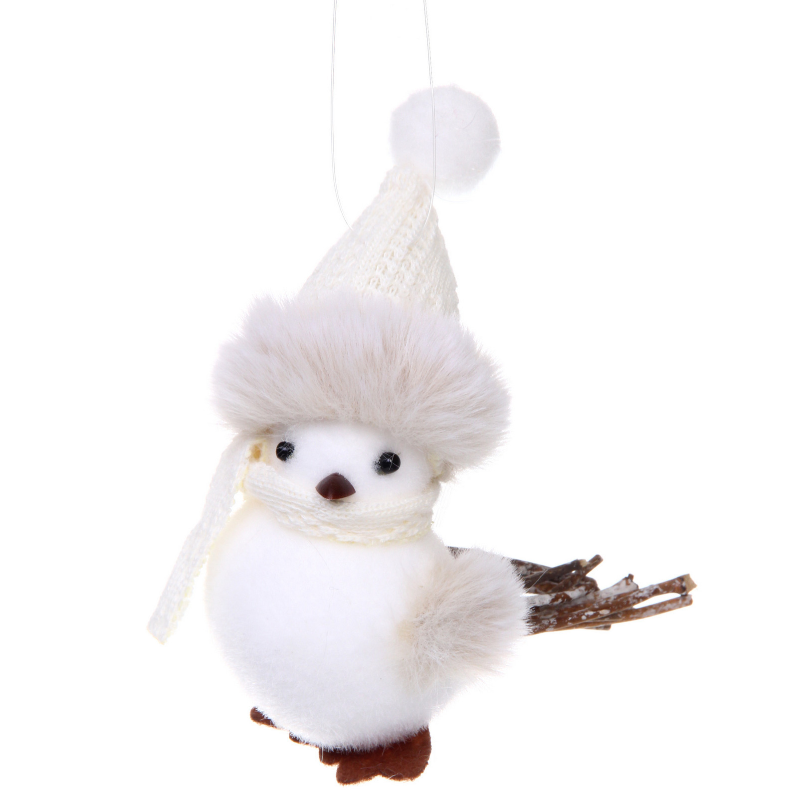 Размер фигурки составляет 12 см, что делает ее идеальной для размещения на полках, столах или в качестве елочной игрушки. Белый цвет с коричневыми акцентами на лапках и пушистая опушка вокруг головы создают эффект зимней сказки. Фигурка «Зимняя птичка» — это не просто украшение, а символ зимнего волшебства, который будет радовать вас и ваших близких.