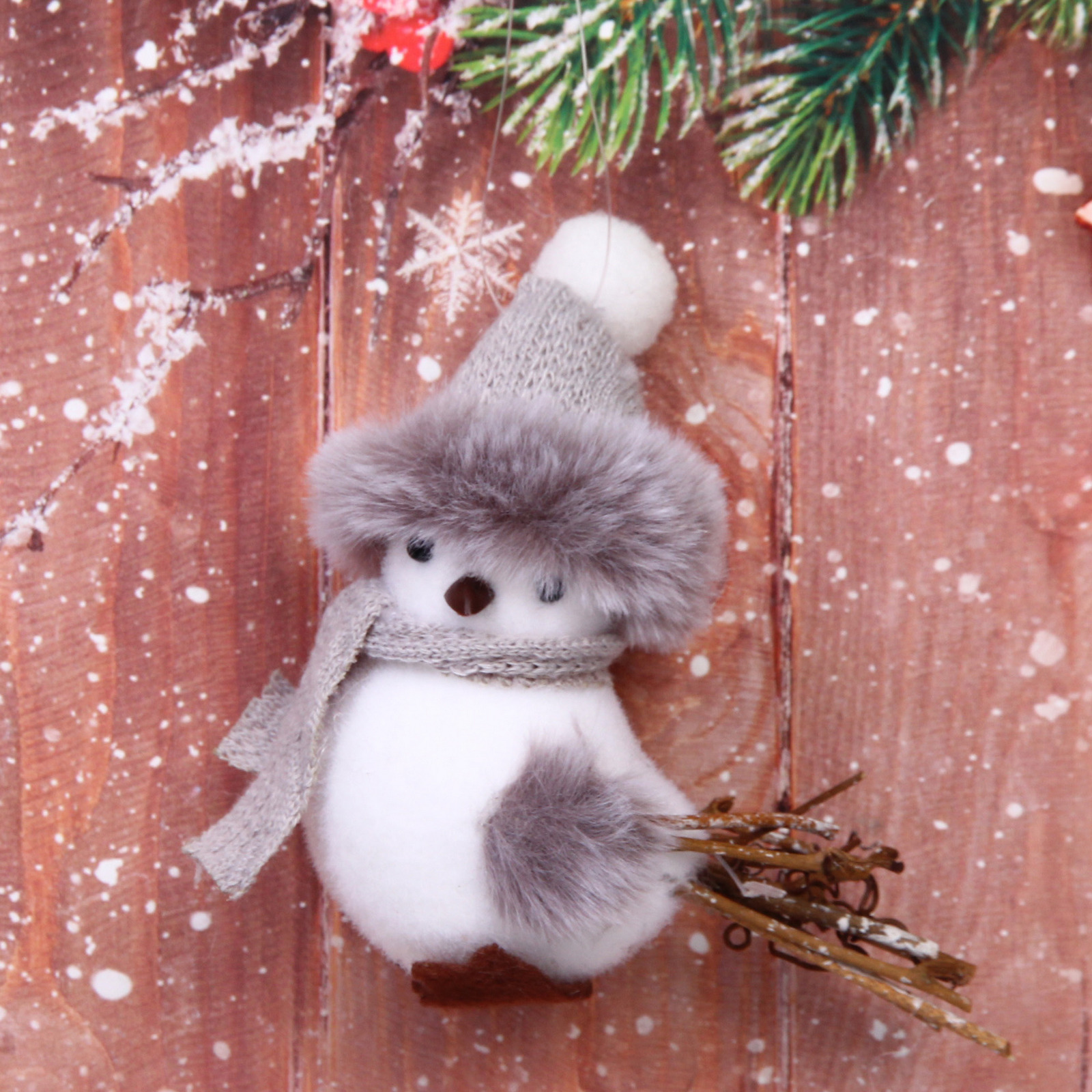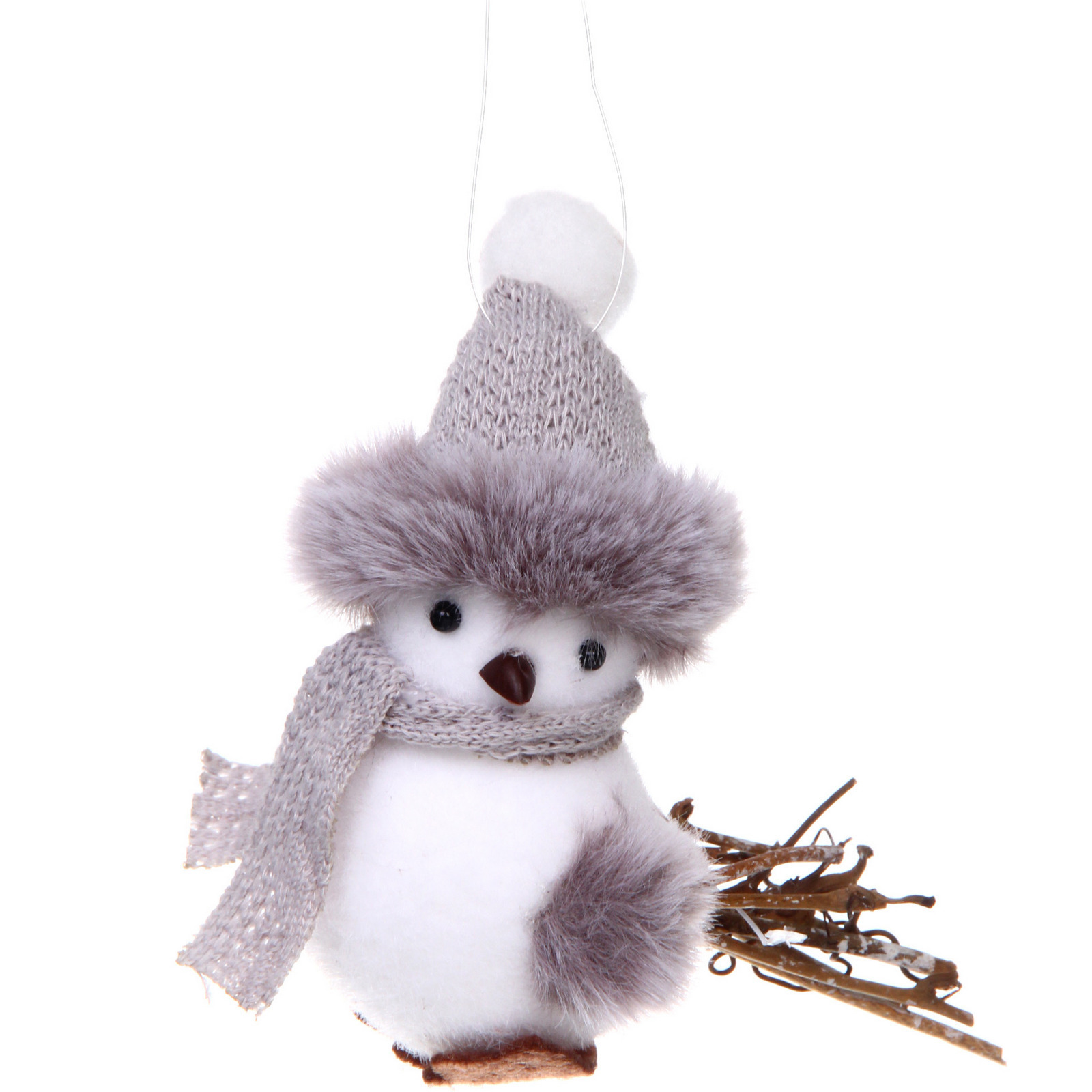 Фигурка выполнена в белом цвете с серыми и коричневыми элементами, что придаёт ей особую выразительность. Она имеет округлую форму и украшена милыми деталями, такими как шапка и шарф. Размеры фигурки составляют 12 см в высоту, что делает её компактной и удобной для размещения в любом уголке вашего дома.