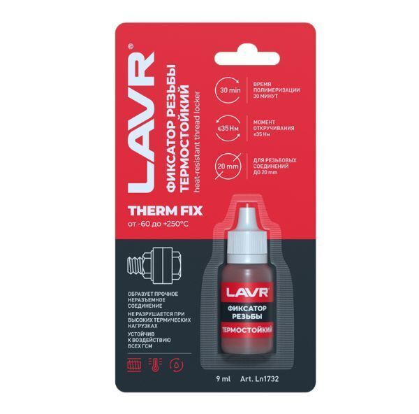 Фиксатор резьбы термостойкий LAVR объемом 9 мл — это идеальное решение для герметизации и фиксации резьбовых соединений, подверженных высоким температурным нагрузкам. Он обеспечивает надежную защиту от саморазвинчивания деталей даже при вибрационных и температурных нагрузках, что делает его незаменимым в условиях, где требуется высокая прочность и долговечность соединений.