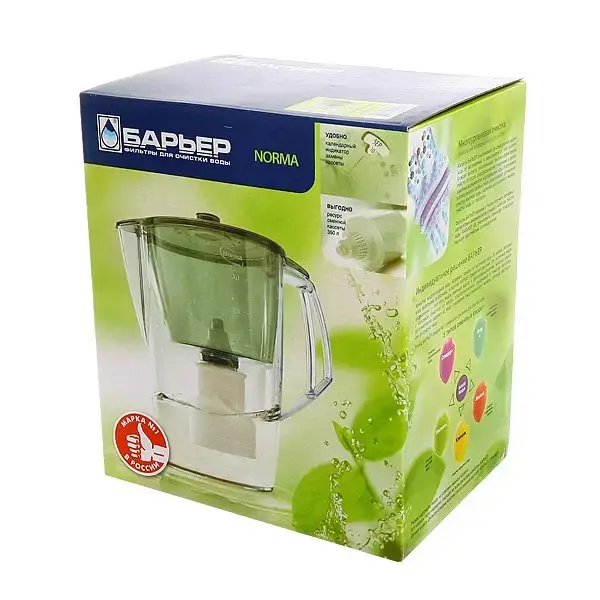 Фильтр-кувшин «Норма» создан для тех, кто ценит удобство и заботится о здоровье семьи. Современный дизайн с прозрачным корпусом и зеленым акцентом органично впишется в интерьер кухни, а эргономичная ручка сделает использование максимально комфортным.