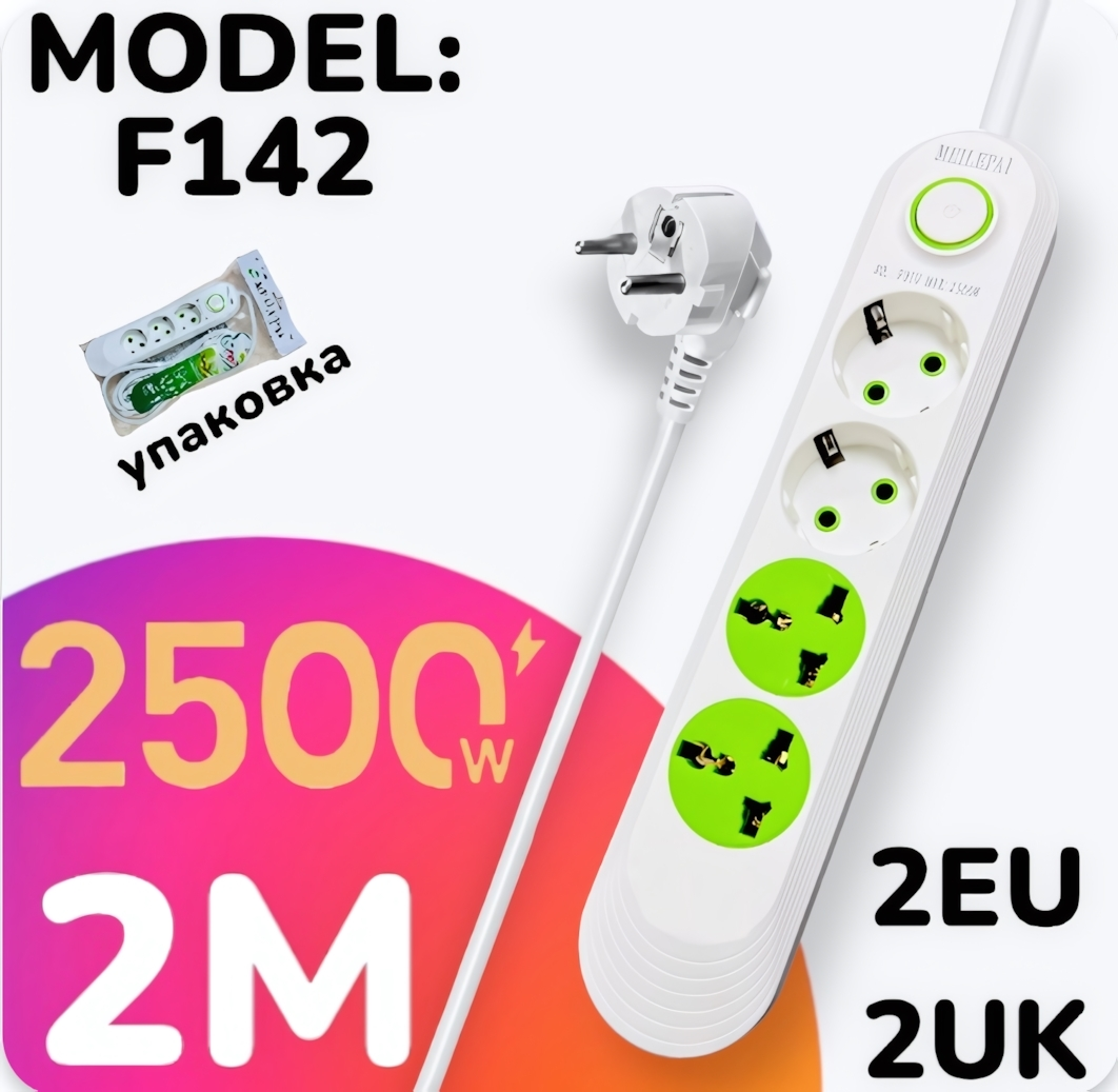 Фильтр F142 подходит для использования в домашних условиях, офисах и на даче. Он легко подключается к стандартной розетке и обеспечивает надежное питание для ваших гаджетов. Благодаря кнопке питания с зеленой подсветкой, вы всегда будете уверены в том, что устройства подключены и готовы к работе.