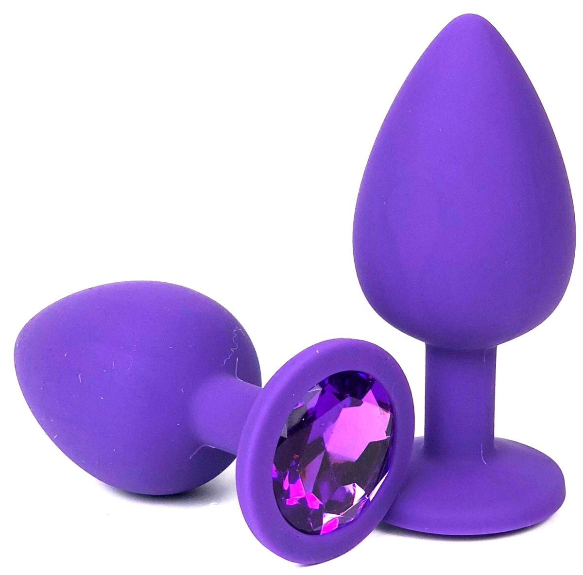 фиолетовая анальная пробка vandersex подарит новые ощущения и уверенность в интимных играх. гладкий силикон обеспечивает комфортное введение, а страз в основании добавляет эстетики и безопасности — основание-ограничитель не даст изделию зайти слишком глубоко.