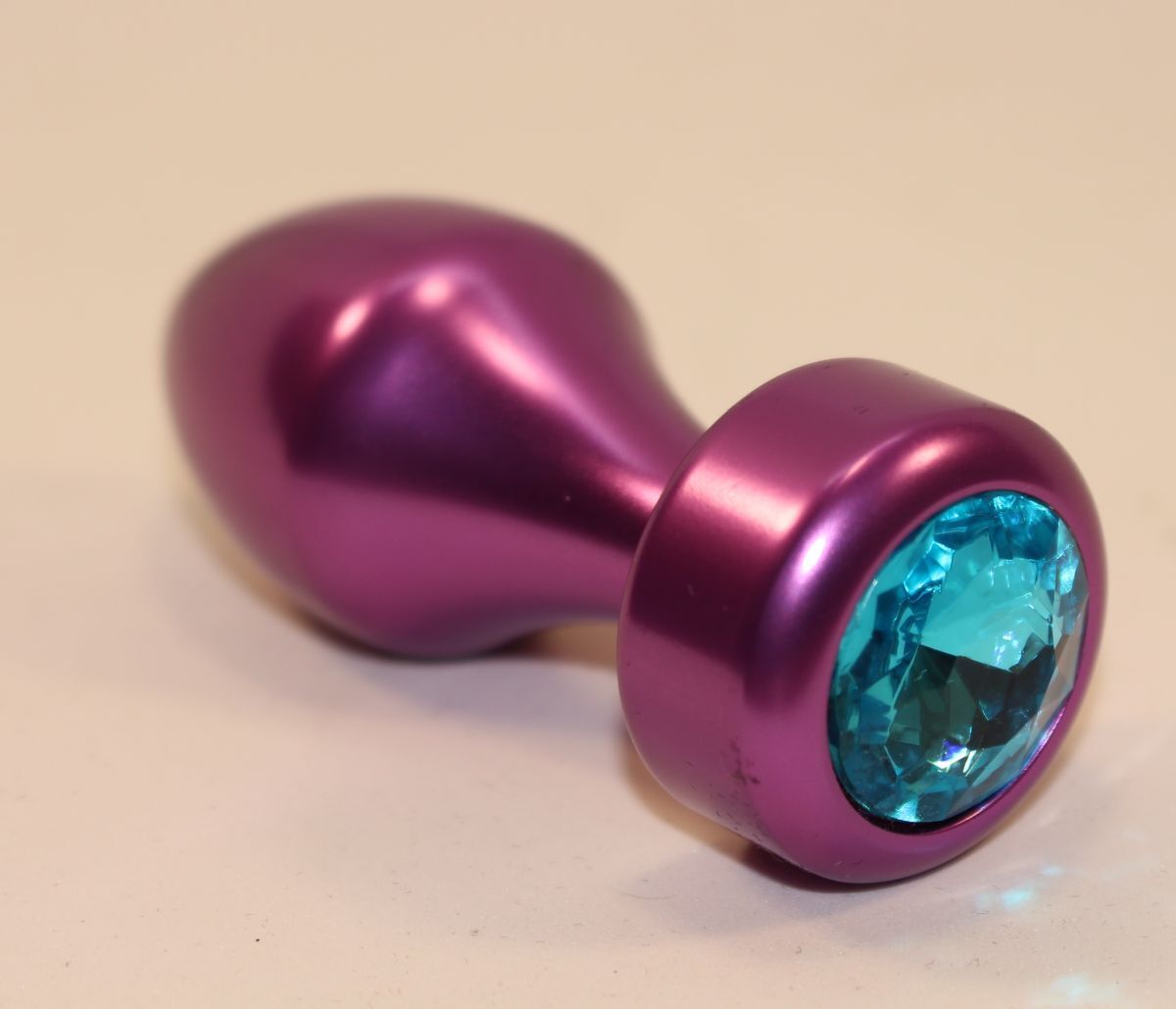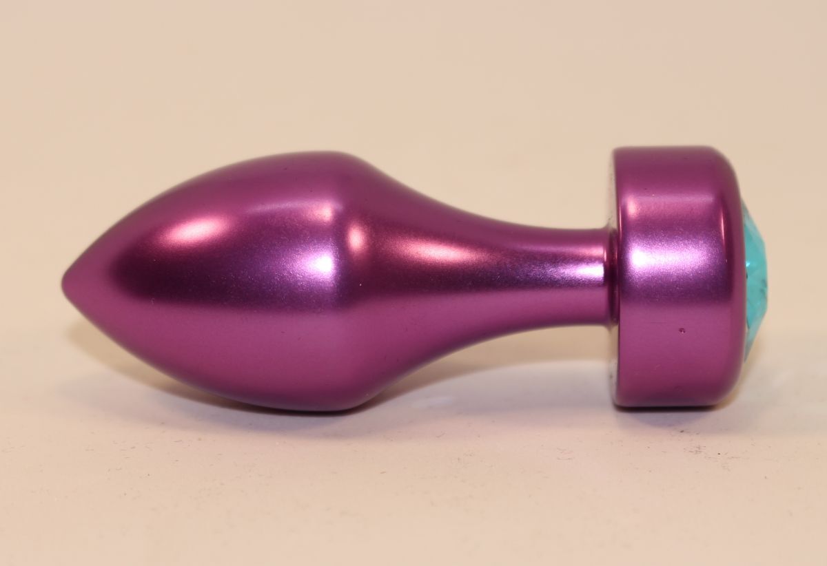 Анальная пробка с голубым кристаллом, фиолетовая, металл, 7.8 см — комфорт и безопасность