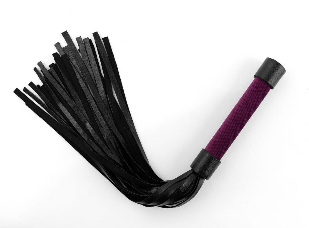 Плеть BDSM «My Rules» с велюровой ручкой, 30 хвостов из эко-кожи, 43 см, фиолетово-черная