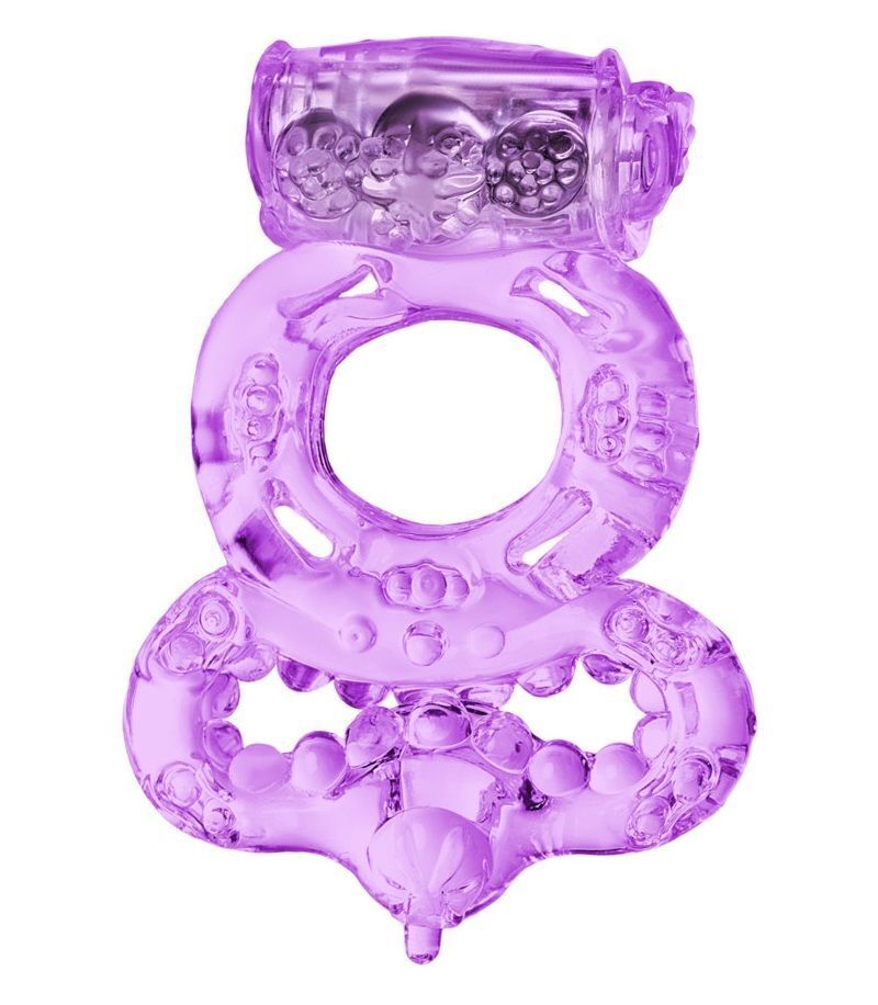 Виброкольцо с подхватом и стимуляцией, фиолетовое, TPE, диаметр 3.5 см, батарейки в комплекте
