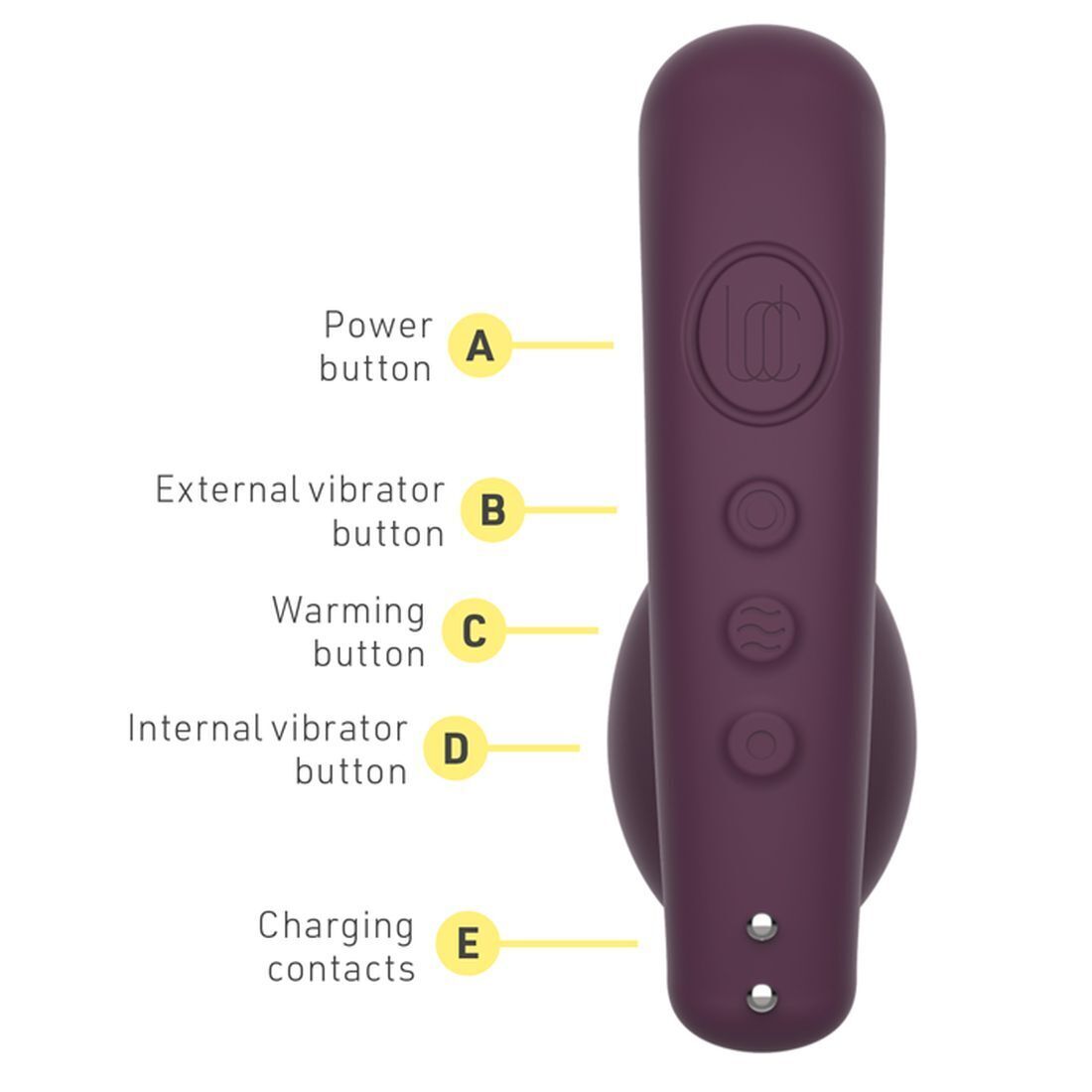 Вибратор Tilt, фиолетовый, 12см, силикон, вибрация и подогрев до 40°C