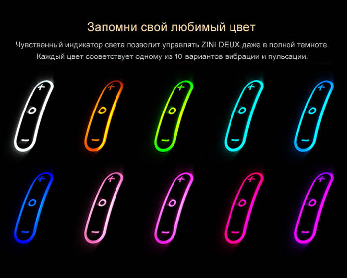 - Каждому из 15 вариантов пульсации и вибрации соответствует свой цвет подсветки.