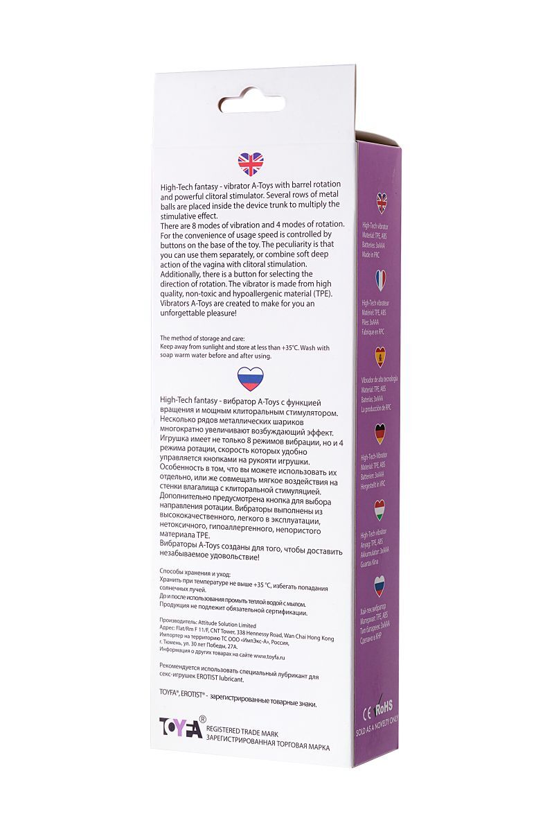 Вибратор с клиторальным стимулятором, 8 режимов вибрации и 4 режима вращения, TPE, фиолетовый, 21 см