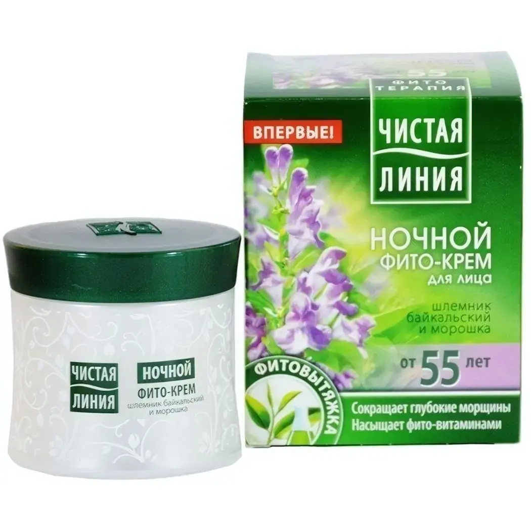 Подарите своей коже заботу и комфорт с ночным фито-кремом от Чистой Линии. Этот уникальный крем, созданный специально для женщин старше 55 лет, помогает сократить глубокие морщины и насытить кожу фитo-витаминами. Его формула, обогащенная экстрактами шлемника байкальского и морошки, обеспечивает интенсивное увлажнение и восстановление кожи во время сна.