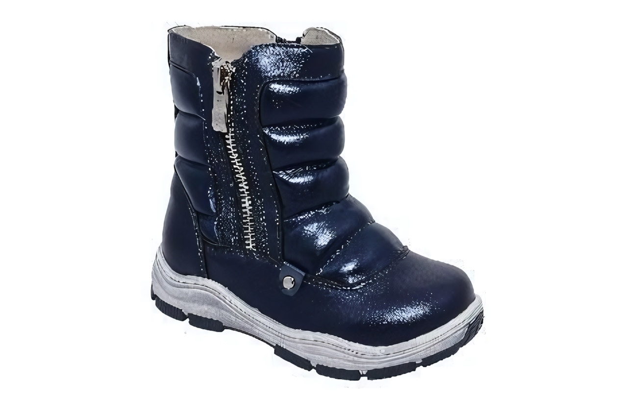 Подарите вашему ребенку незабываемые зимние прогулки с этими стильными и теплыми сапогами. Синий цвет с блестящей текстурой обязательно понравится маленьким модникам, а удобная молния позволит быстро и легко обуваться.