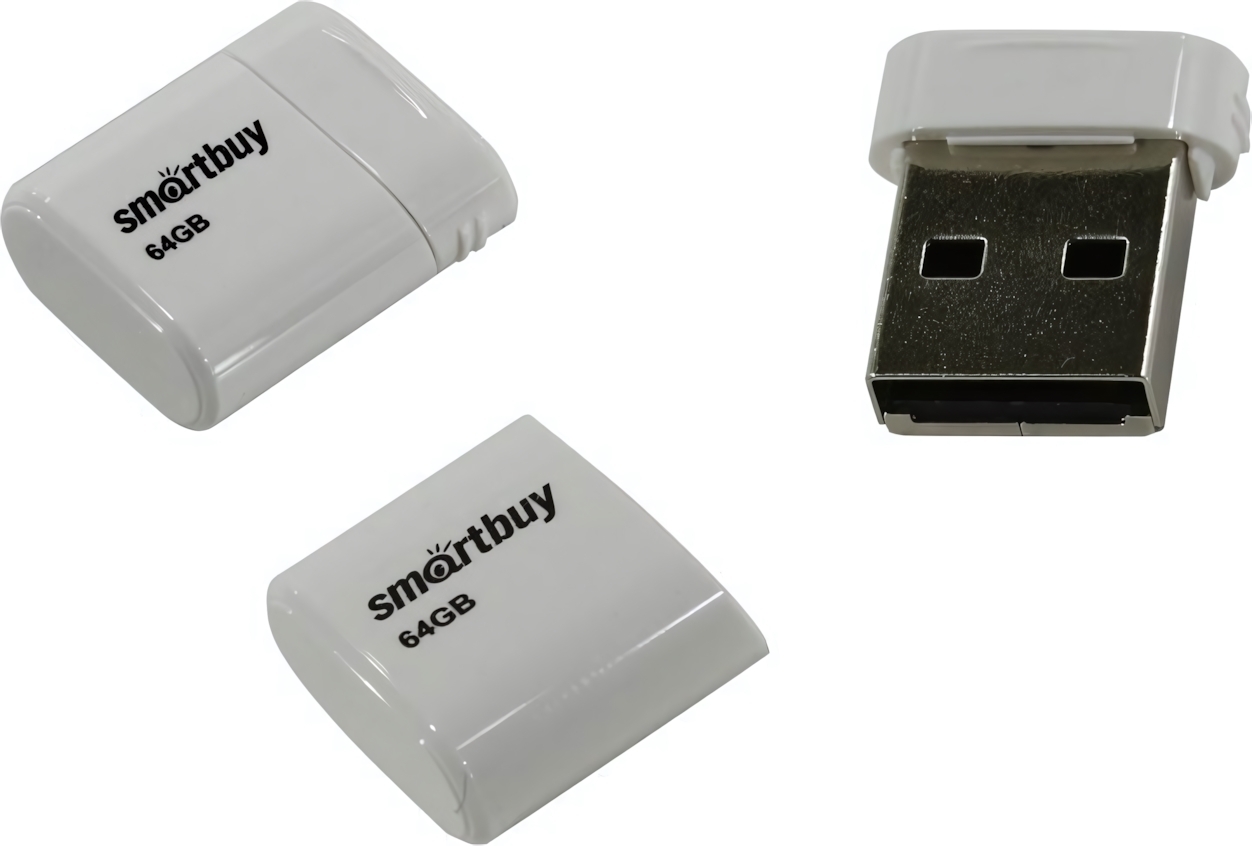 Флеш-накопитель 64 Гб Smartbuy Lara, белый, USB 2.0, скорость 15/5 МБ/с, компактный дизайн