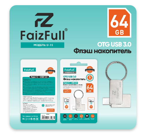 Выбирая флеш-накопитель OTG USB 3.0 FaizFull U15-64, вы обеспечиваете себе удобство и высокую скорость передачи любых данных в любом месте.