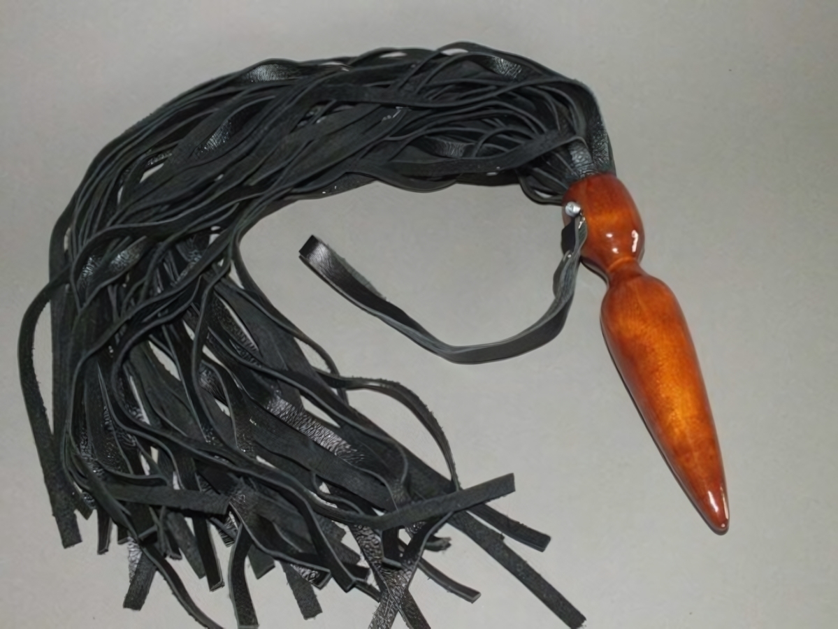 Флогер ручной работы «конус», натуральная кожа и дерево, рукоять 17 см, 40 полос 40 см, черно-коричневый, ПОДИУМ
