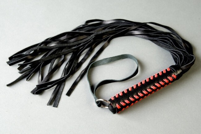 Флогер с плетеной ручкой, черный/красный, натуральная кожа, длина полос 50см