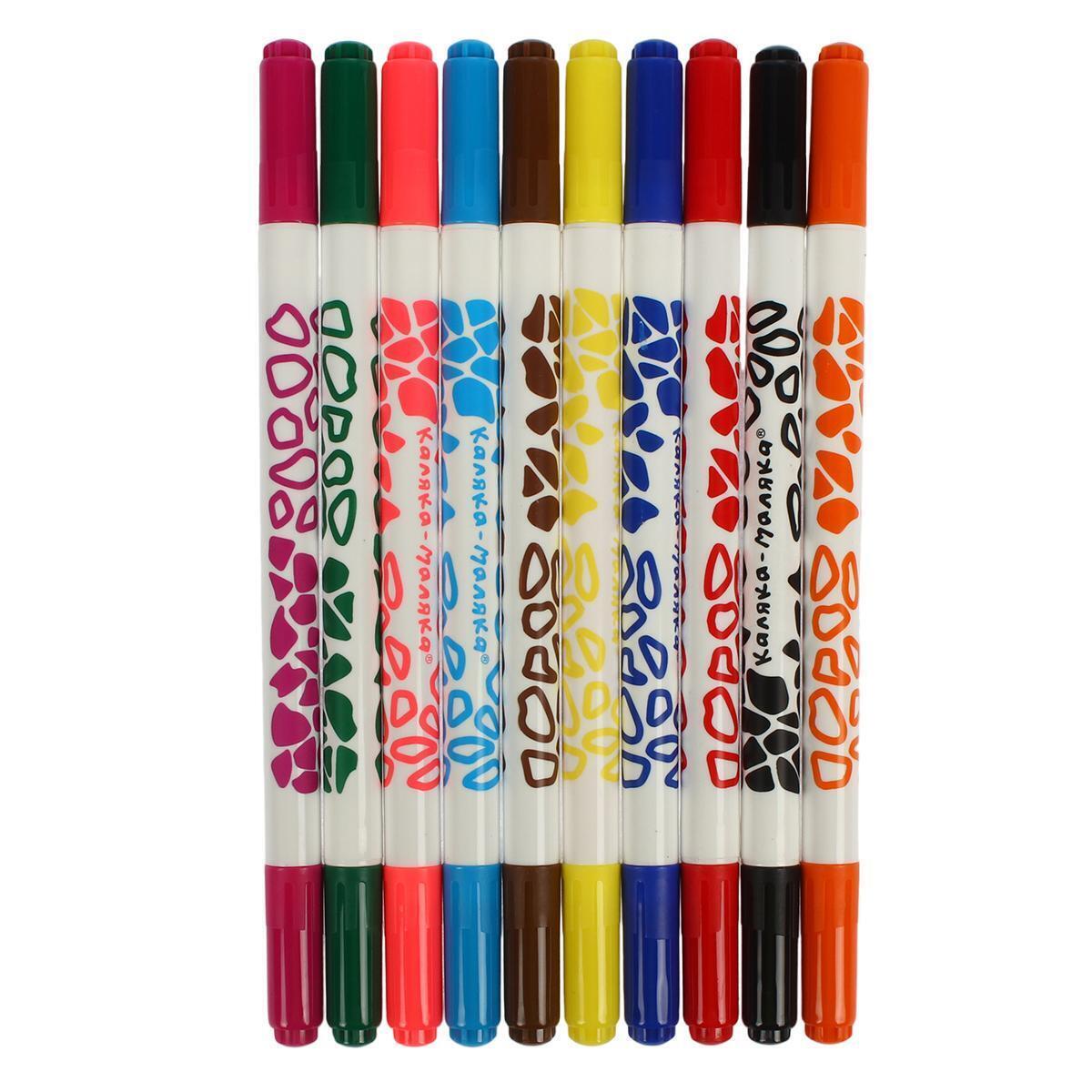 Фломастеры двусторонние, 10 цветов «Каляка-Маляка», яркие, для рисования и раскрашивания, утолщенный корпус