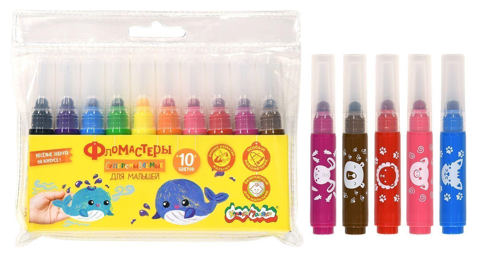 Фломастеры "Для малышей" 10цв, утолщенные, круглый корпус, суперсмываемые