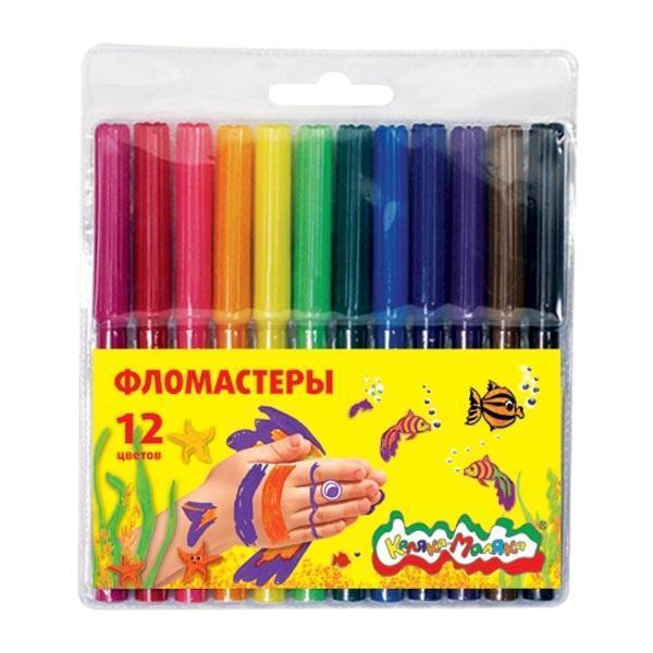 Фломастеры "Каляка-Маляка" 12 цветов, легкосмываемые, круглый корпус