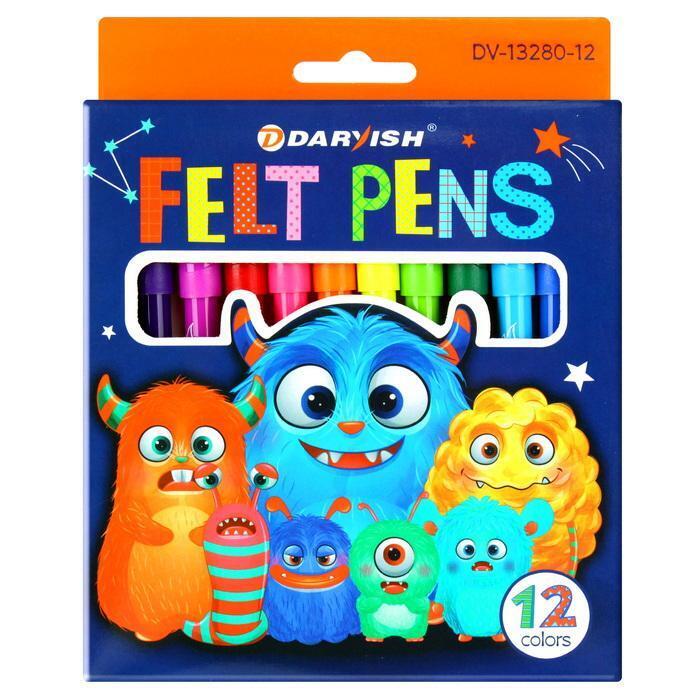 Фломастеры 'FELT PENS' 12 цветов, водная основа, яркие и безопасные