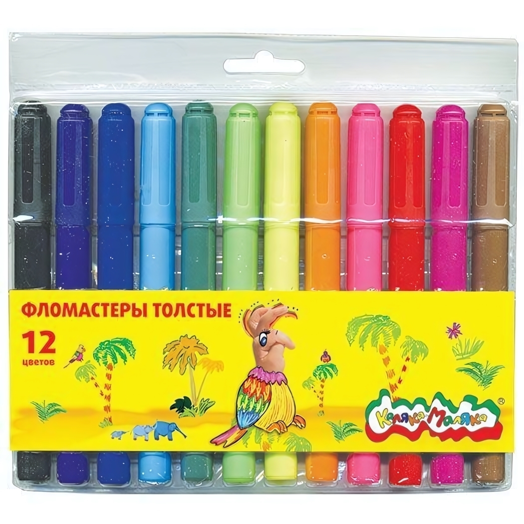Фломастеры толстые "Каляка-Маляка", 12 цветов, легкосмываемые чернила