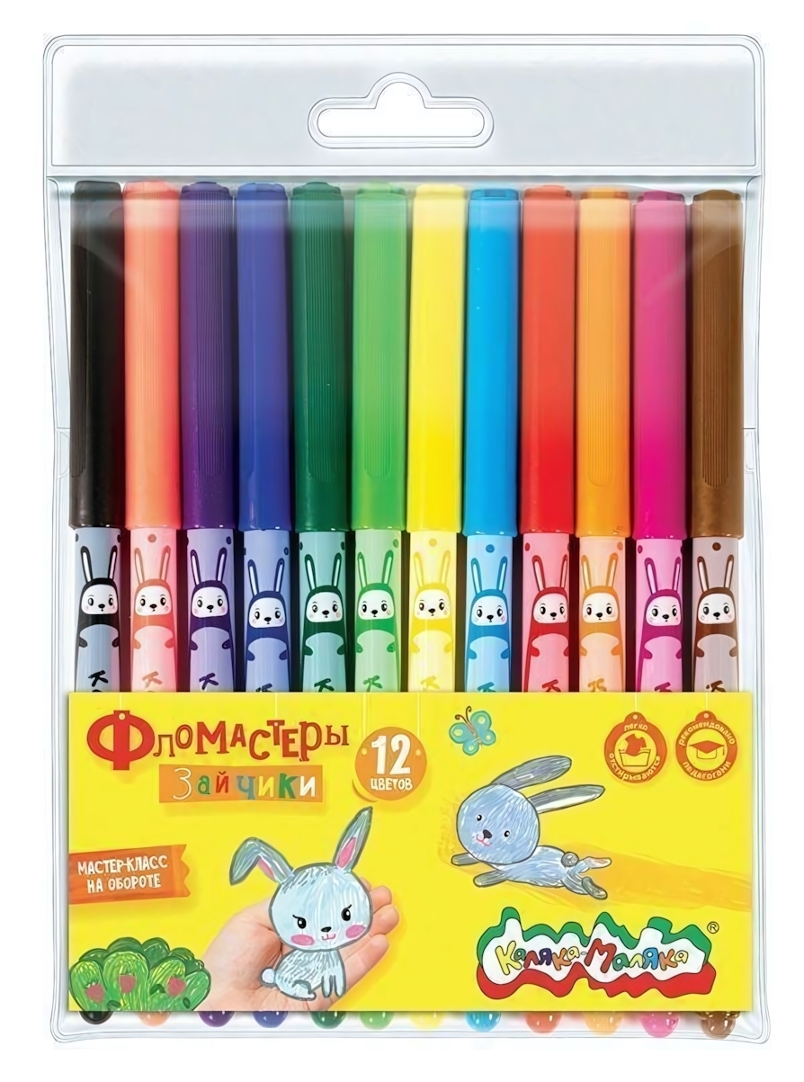 Фломастеры "Зайчики" 12 цветов, легкосмываемые, круглый корпус