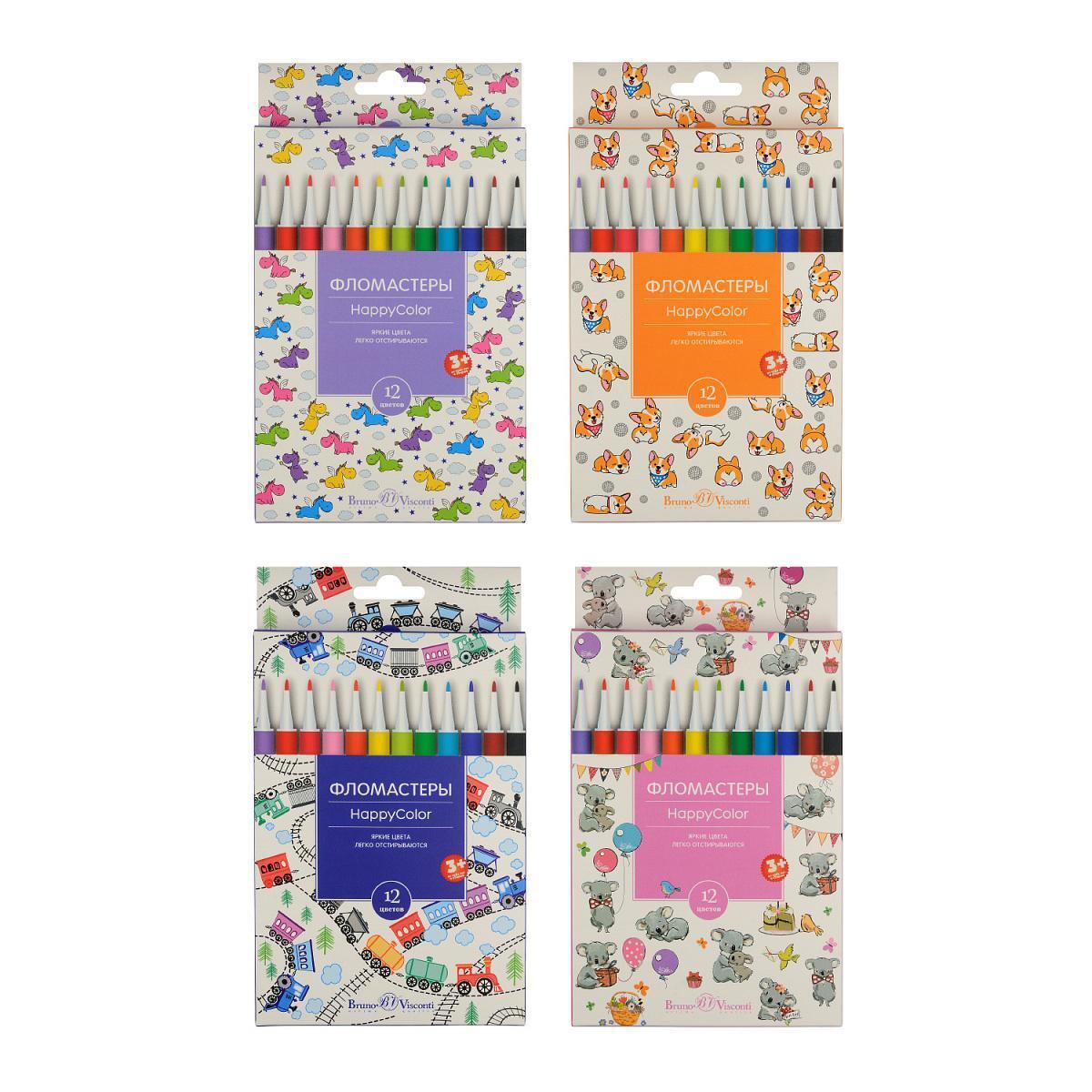 Фломастеры 'Happycolor' 12 цветов, яркие и безопасные, для детей от 3 лет
