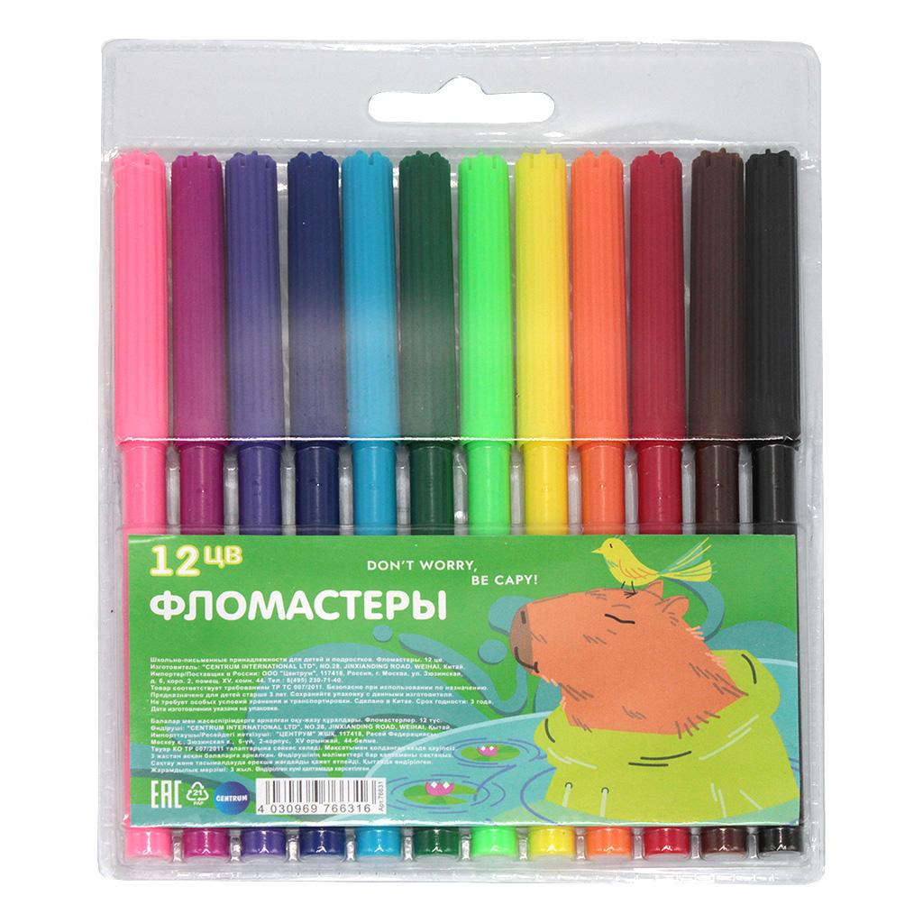 Фломастеры 12 цветов «Капибара», водные, вентилируемые колпачки, морозостойкие