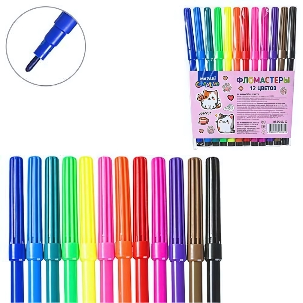 Фломастеры 12 цветов "Котики" — отличное решение для тех, кто любит рисовать, раскрашивать и создавать красочные изображения. Набор включает классические и насыщенные оттенки, позволяющие воплотить любые художественные задумки. Удобный круглый корпус делает их комфортными в использовании как для детей, так и для взрослых.