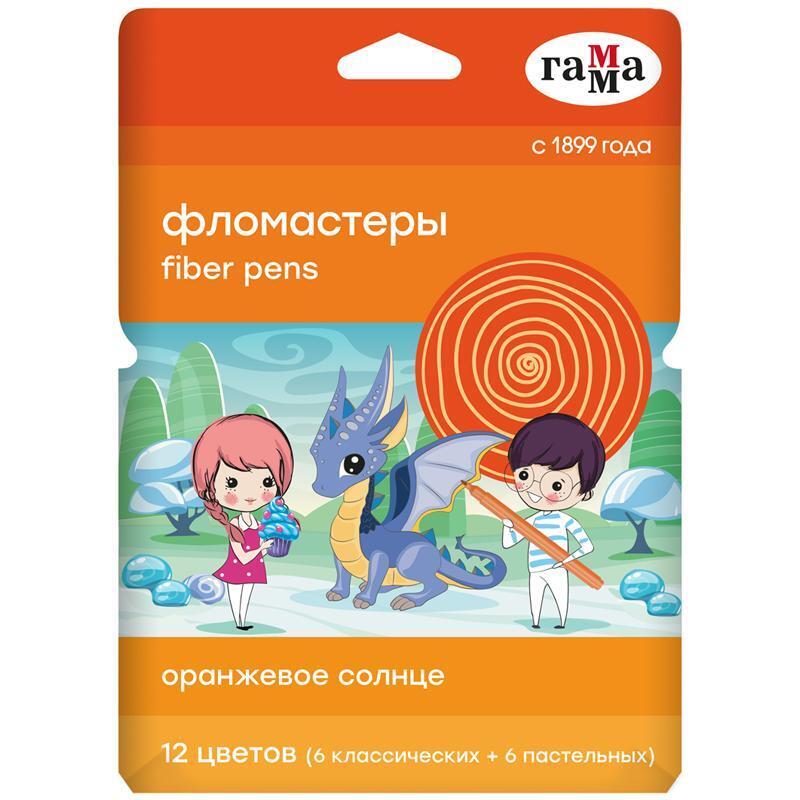 Фломастеры Гамма "Оранжевое солнце", 12 цветов: 6 пастельных, 6 обычных, смываемые