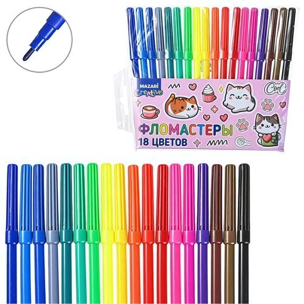 Фломастеры «Котики» — 18 ярких цветов для творчества