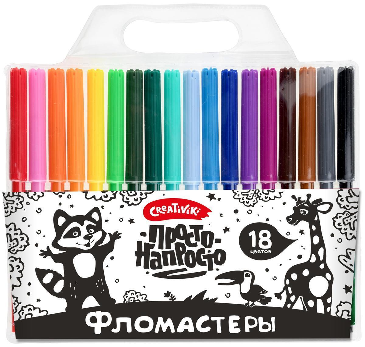 Фломастеры Creativiki "Просто классические" 18 цветов, круглые, пластиковый блистер 144мм
