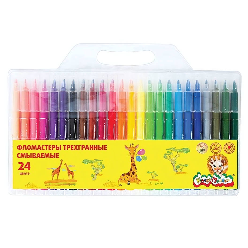 Фломастеры трёхгранные Каляка-Маляка® — это идеальный выбор для маленьких художников! Они помогут развить творческие способности вашего ребенка и подготовят его к письму. Яркие, долговечные и безопасные, эти фломастеры созданы специально для детей от 3 лет. Благодаря трёхгранной форме, они удобно лежат в руке, что снижает нагрузку на кисть и способствует правильному захвату. Ваш ребенок сможет легко рисовать и раскрашивать, не уставая.