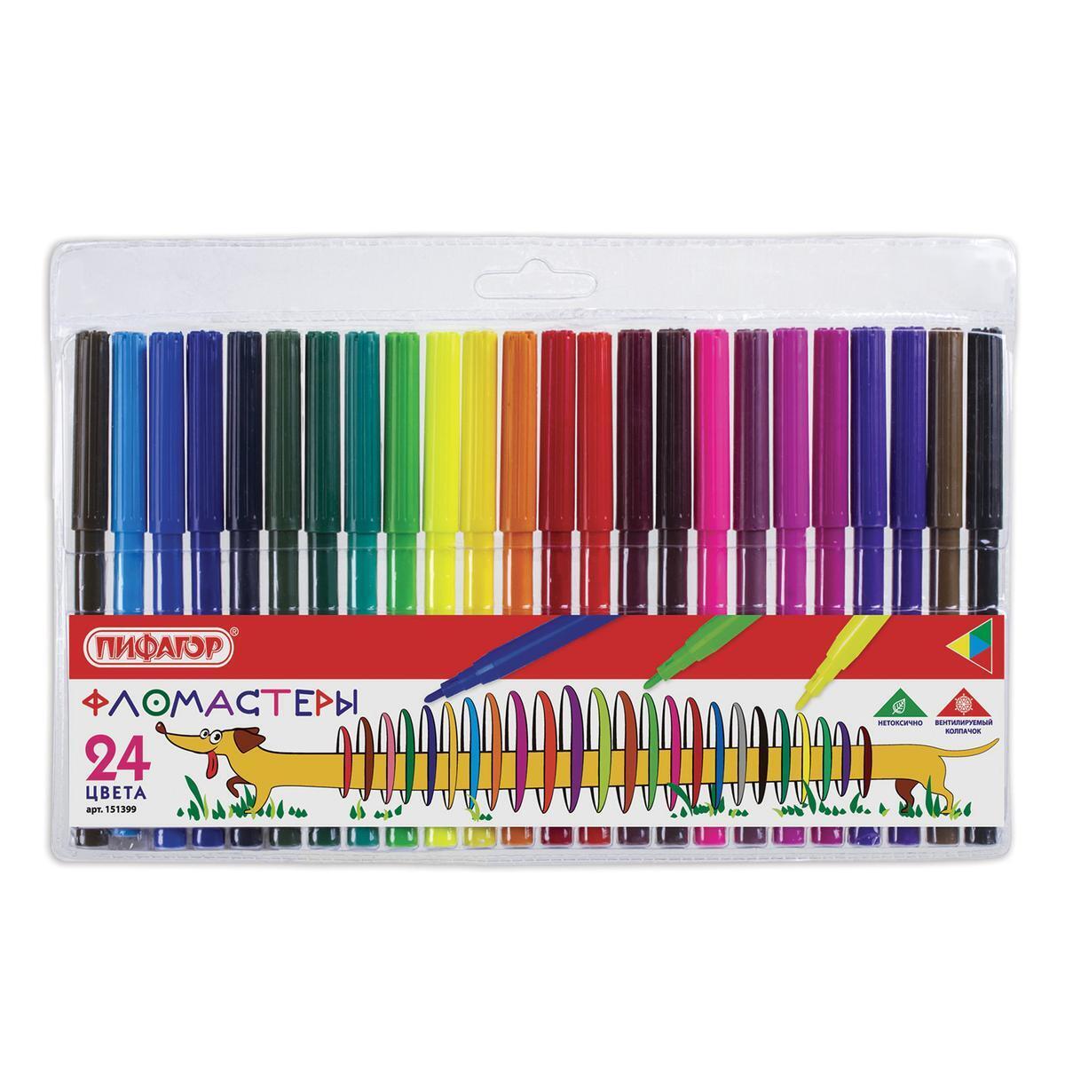 Фломастеры 'Веселая такса' — это идеальный выбор для юных художников и любителей рисования. С 24 яркими цветами, эти фломастеры помогут раскрыть творческий потенциал вашего ребенка, обеспечивая комфорт и удобство в использовании. Вентилируемый колпачок гарантирует безопасность, а нетоксичные водорастворимые чернила делают их подходящими для детей.