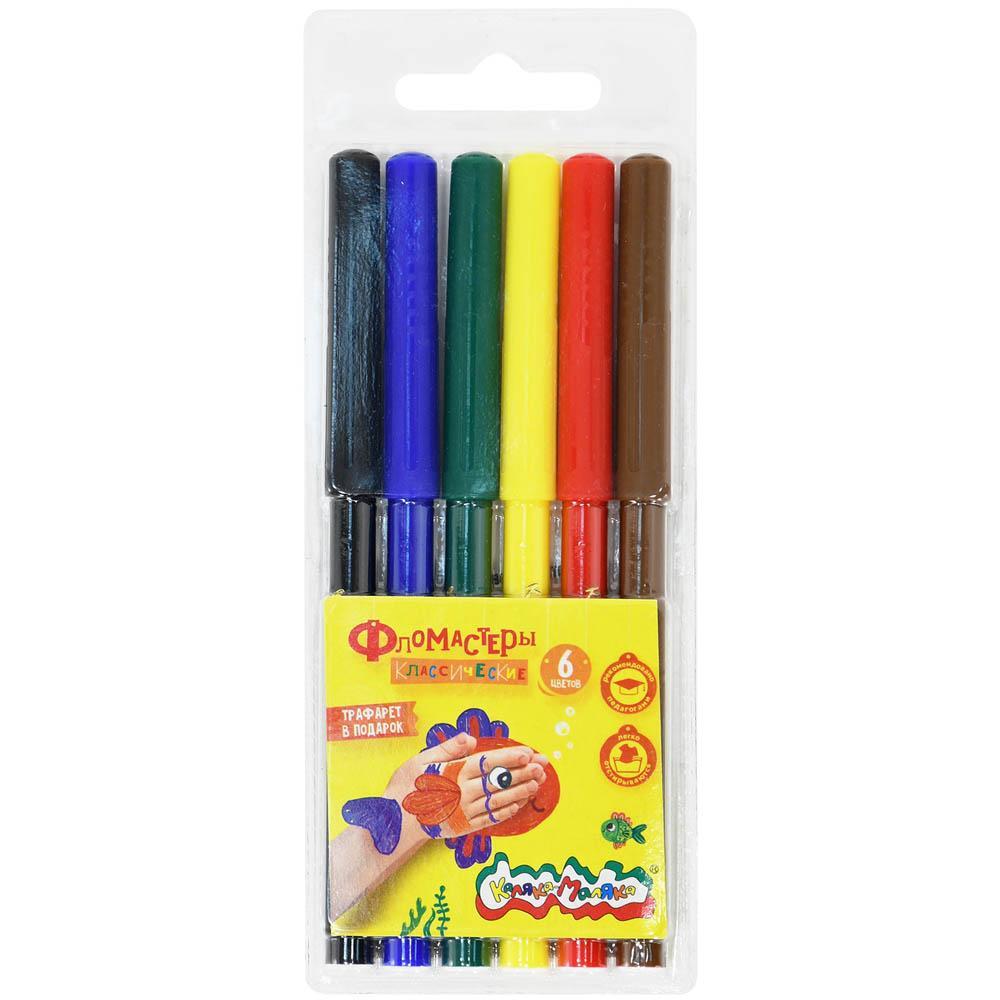 Фломастеры детские 6 цветов «Каляка-Маляка» с трафаретом, водные, безопасные колпачки