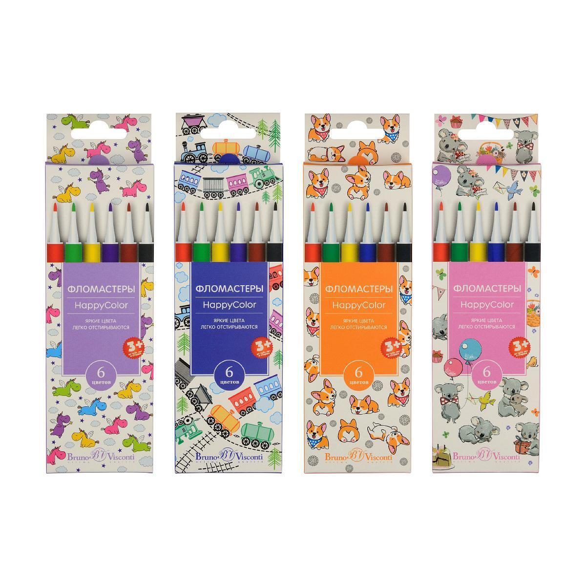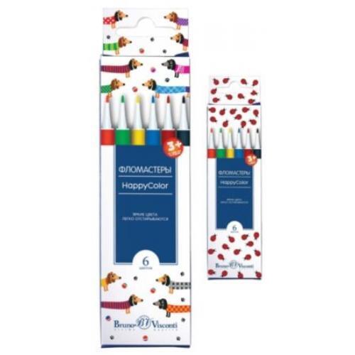 Фломастеры 6цв. «Happycolor», яркие цвета, безопасный полипропилен, для детского творчества