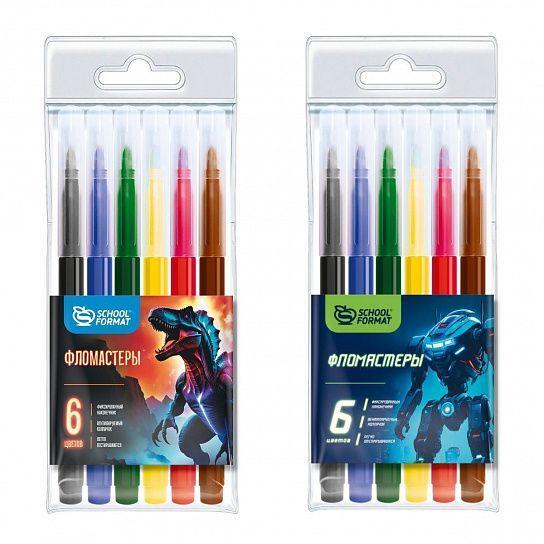 Фломастеры Schoolformat 6 цветов, смываемые чернила, 'Микс для мальчиков'