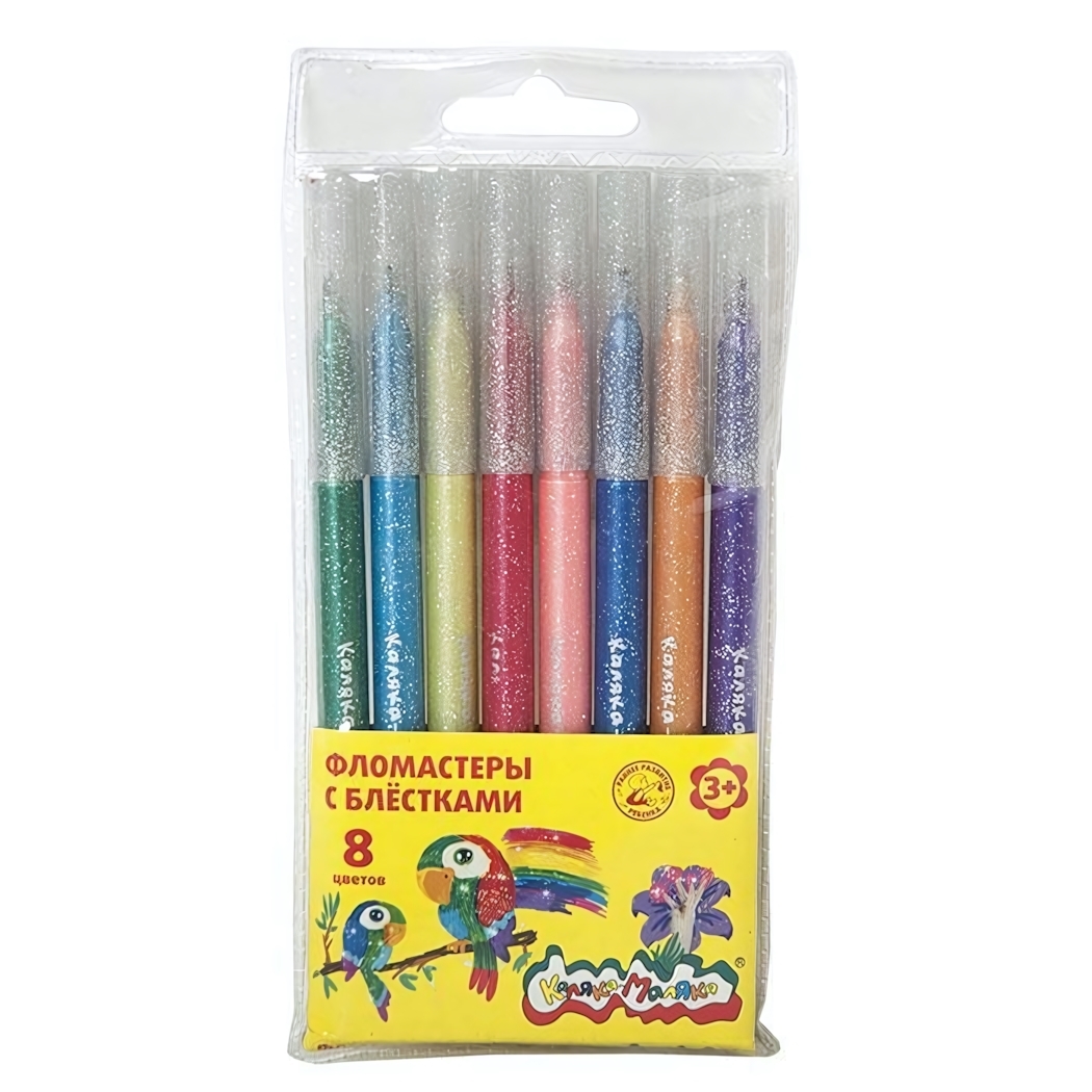 Фломастеры с блестками «Каляка-Маляка», 8 цветов, грифель 4,5 мм, безопасный колпачок