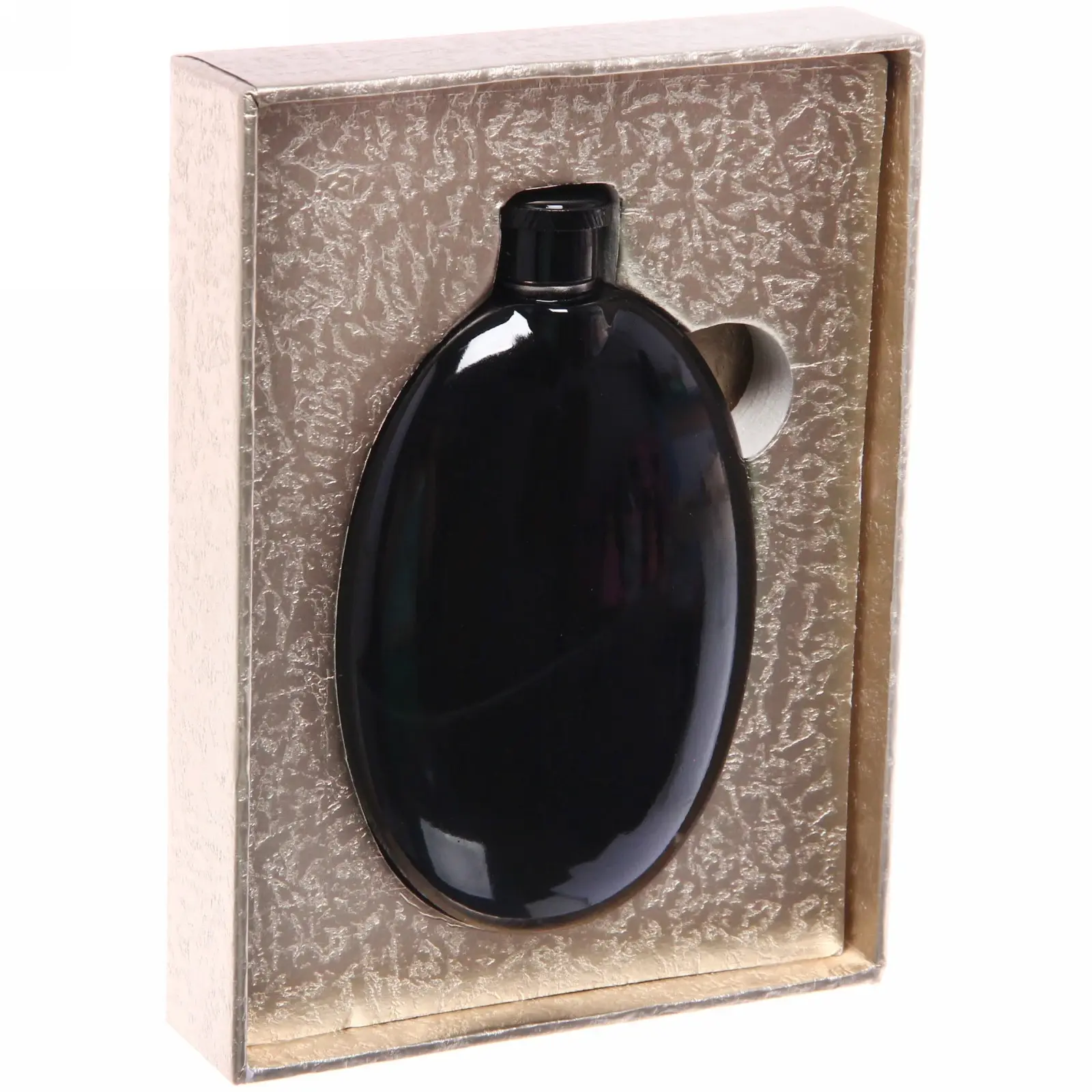 Фляга имеет овальную форму и гладкую блестящую поверхность, что придаёт ей современный вид. Она легко помещается в карман или сумку, что делает её идеальной для переноски. Закрывающаяся крышка обеспечивает надежное хранение жидкости, предотвращая протекание. Подходит для использования как в повседневной жизни, так и в особых случаях.