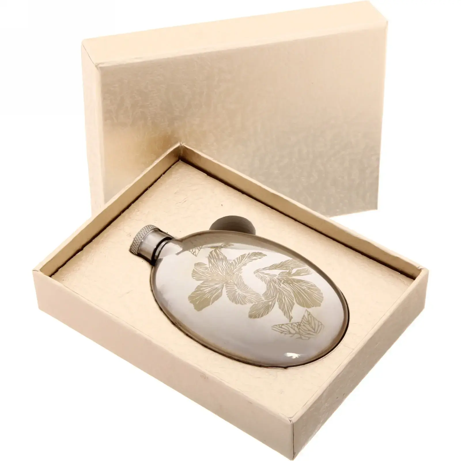 - Гладкая текстура и гравировка в виде растительных узоров придают фляге уникальный вид.
