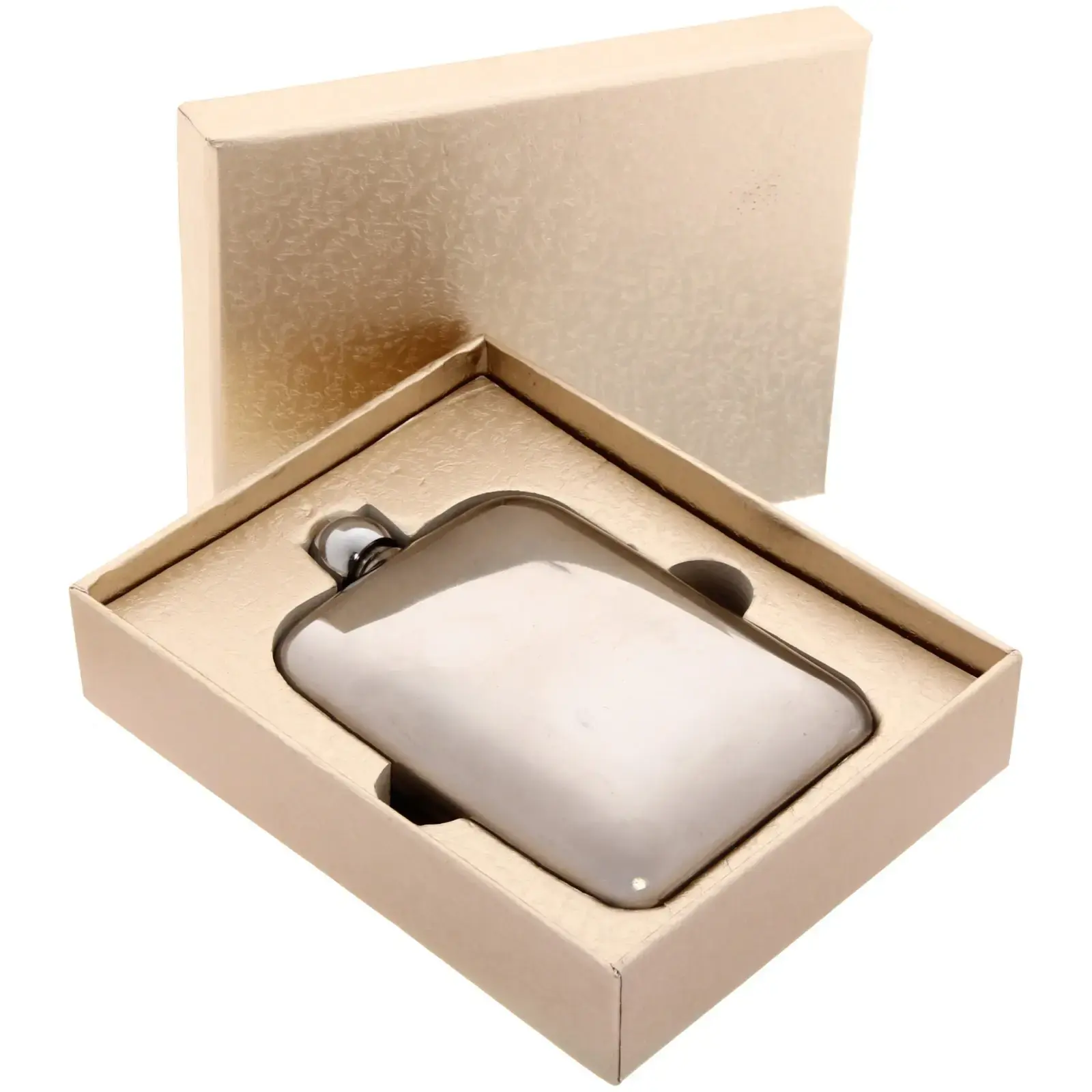 Фляга имеет прямоугольную форму с закругленными углами и выполнена в серебристом цвете. Упаковка фляги также выполнена из качественного картона с текстурированной поверхностью, что делает её презентабельной и подходящей для подарка. Не упустите возможность порадовать себя или близких стильным и практичным аксессуаром!